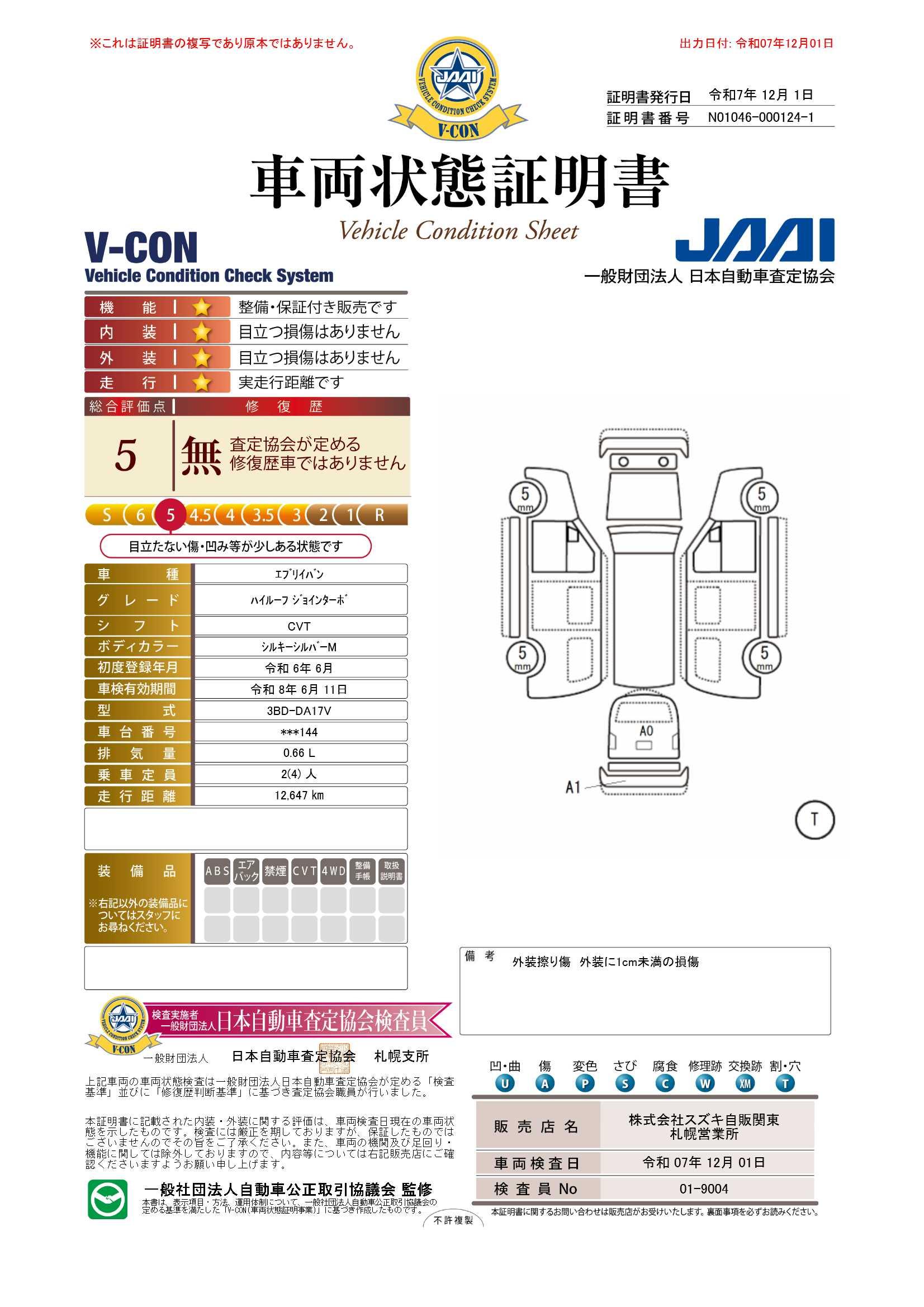 | 保証について | [保証付]:2027(令和9)年6月まで・60000km ※いずれか早い時期が保証適用の条件となります。 |