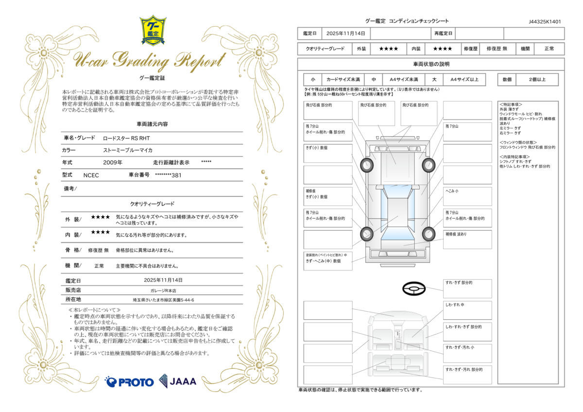 中古車の状態は、専門家でなければなかなか分かりにくいものです。外観は綺麗に見えても内装や隠れた部分、修復歴の有無などほとんど分かりません。お客様に安心してお車を選んで頂く為に、当社の展示車は全て第三者機関の日本自動車鑑定協会の鑑定師が中古車を鑑定。プロが一台一台チェックします。