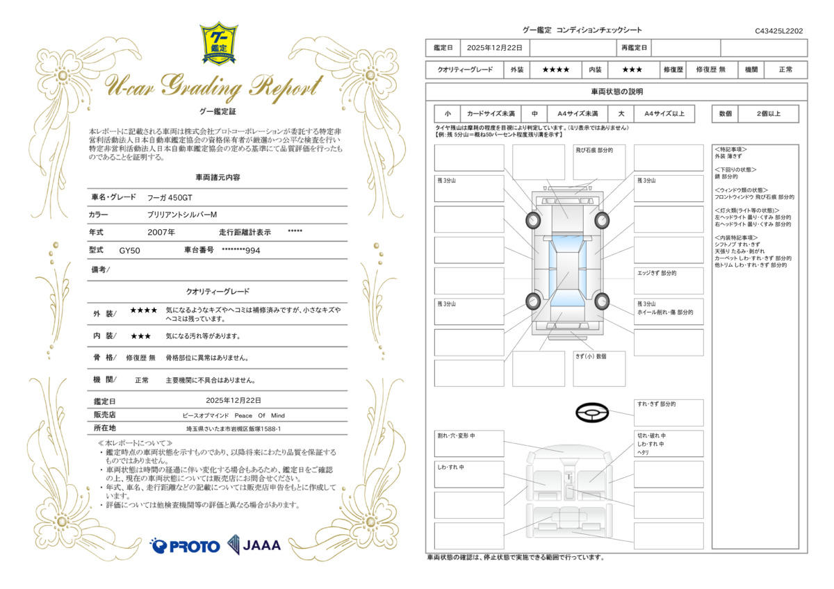 | 保証について | [保証付]:1ヶ月・1000km ※いずれか早い時期が保証適用の条件となります。 |