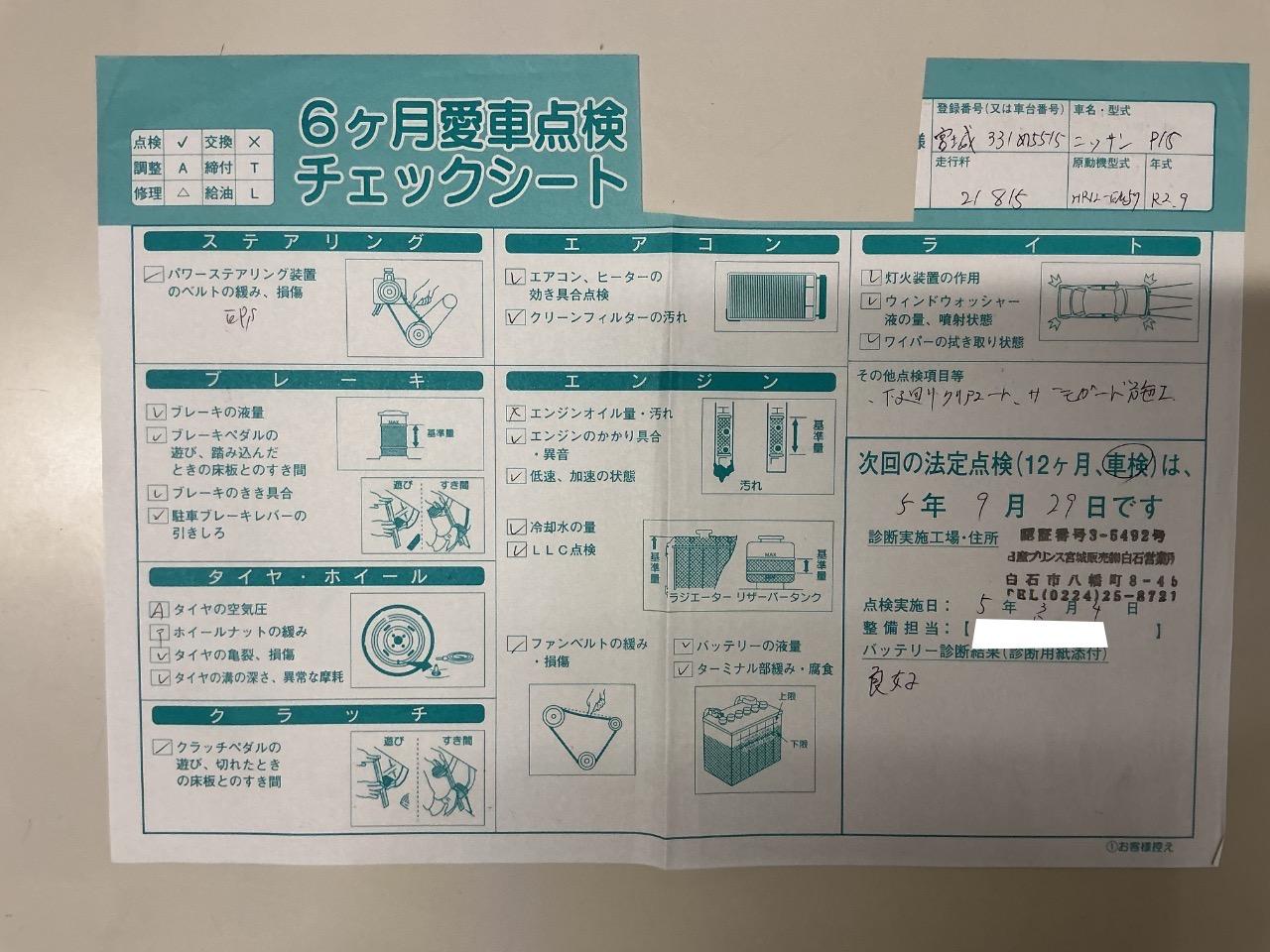 走行無制限1年間無料保証! プレミアム認定車 (Nissan Intelligent Choice) は2年無理保証♪ うれしい無料点検つきで、安心&快適ドライブ。(納車後1ヶ月または1000kmでの無料点検となります。)