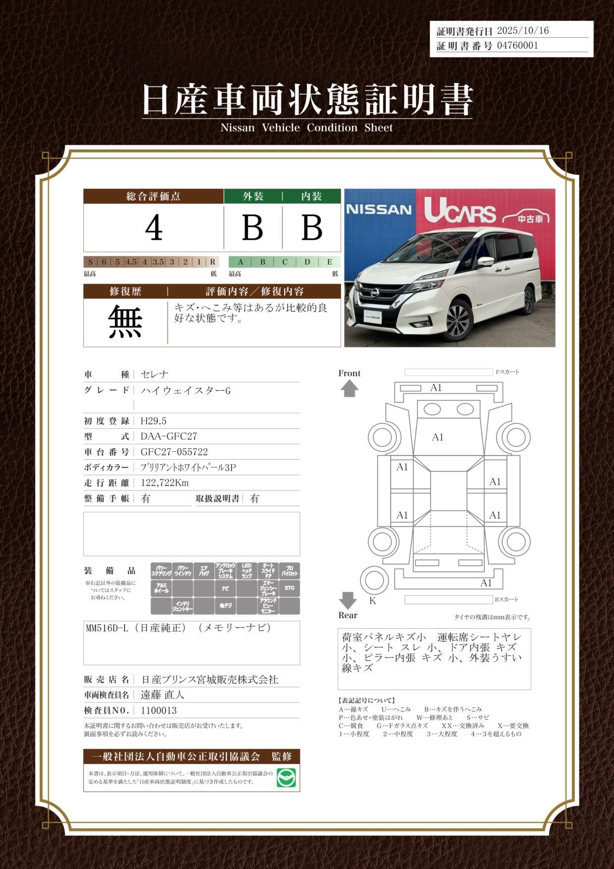 1年保証付(期間中走行距離無制限)全国の日産サービス工場にて保証が受けられるのでお出かけ時でも安心です♪2年延長保証もあります!『ワイド保証プレミアム』詳しくはスタッフまでお問い合わせください!