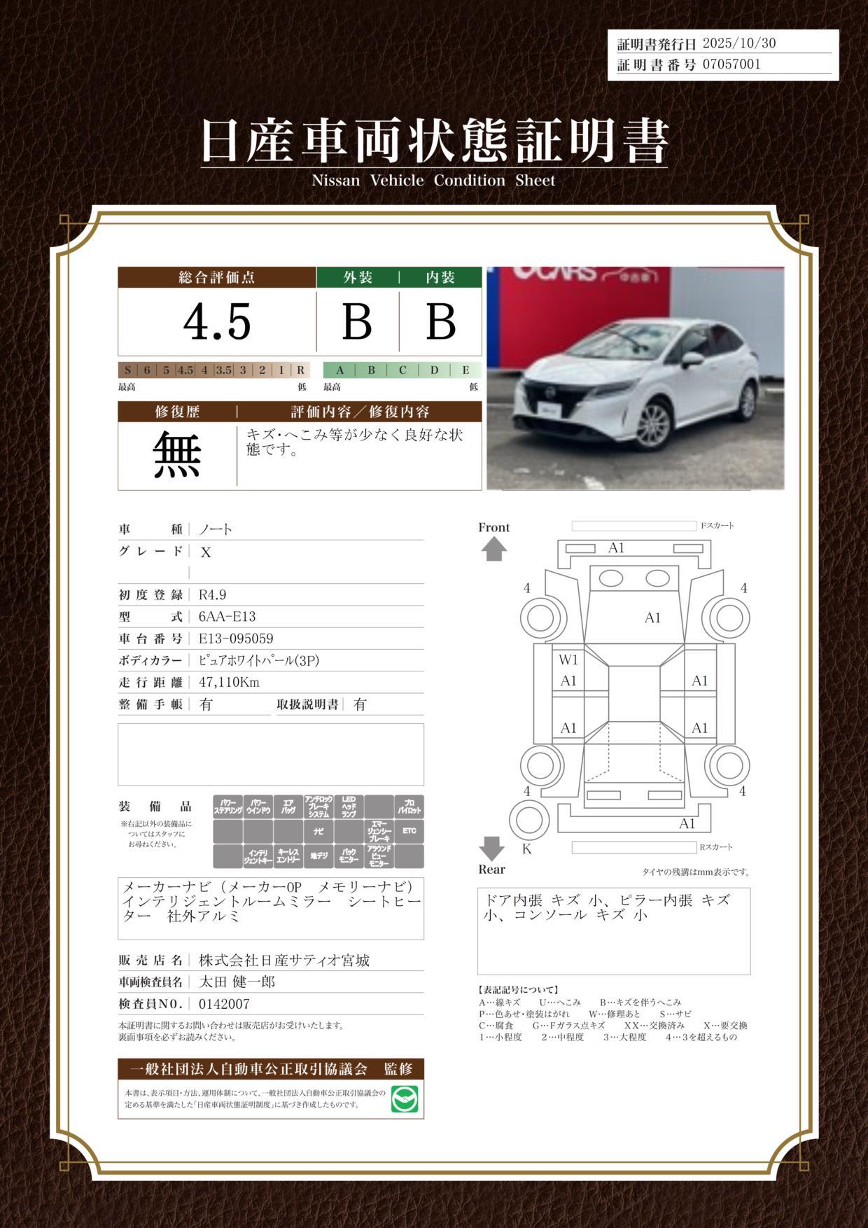 『日産中古車は全車保証付き』1年間(ワイド保証ライトは3ヶ月)走行距離無制限で全国2300ヵ所の日産サービス工場でサポート。