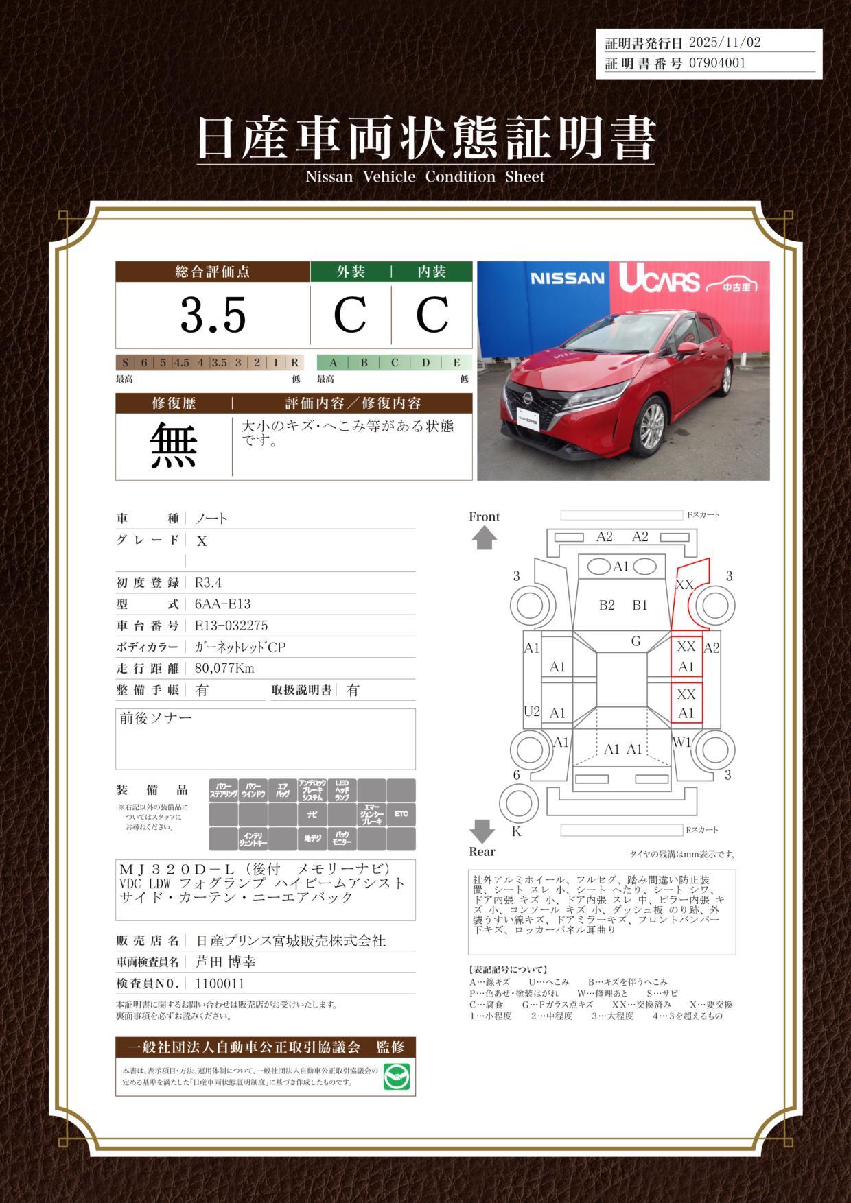 | 保証について | [保証付]:12ヶ月・走行無制限 |