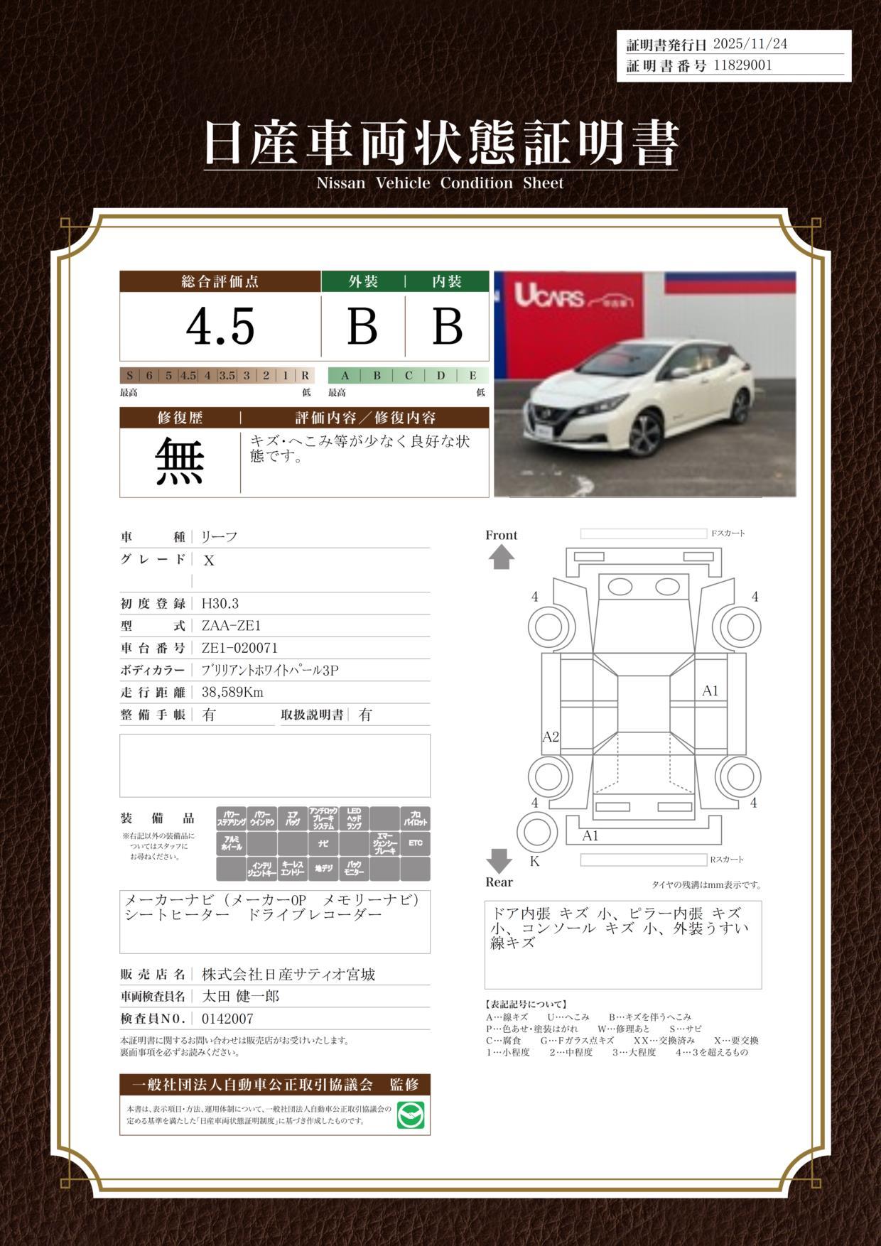 『日産中古車は全車保証付き』1年間(ワイド保証ライトは3ヶ月)走行距離無制限で全国2300ヵ所の日産サービス工場でサポート。