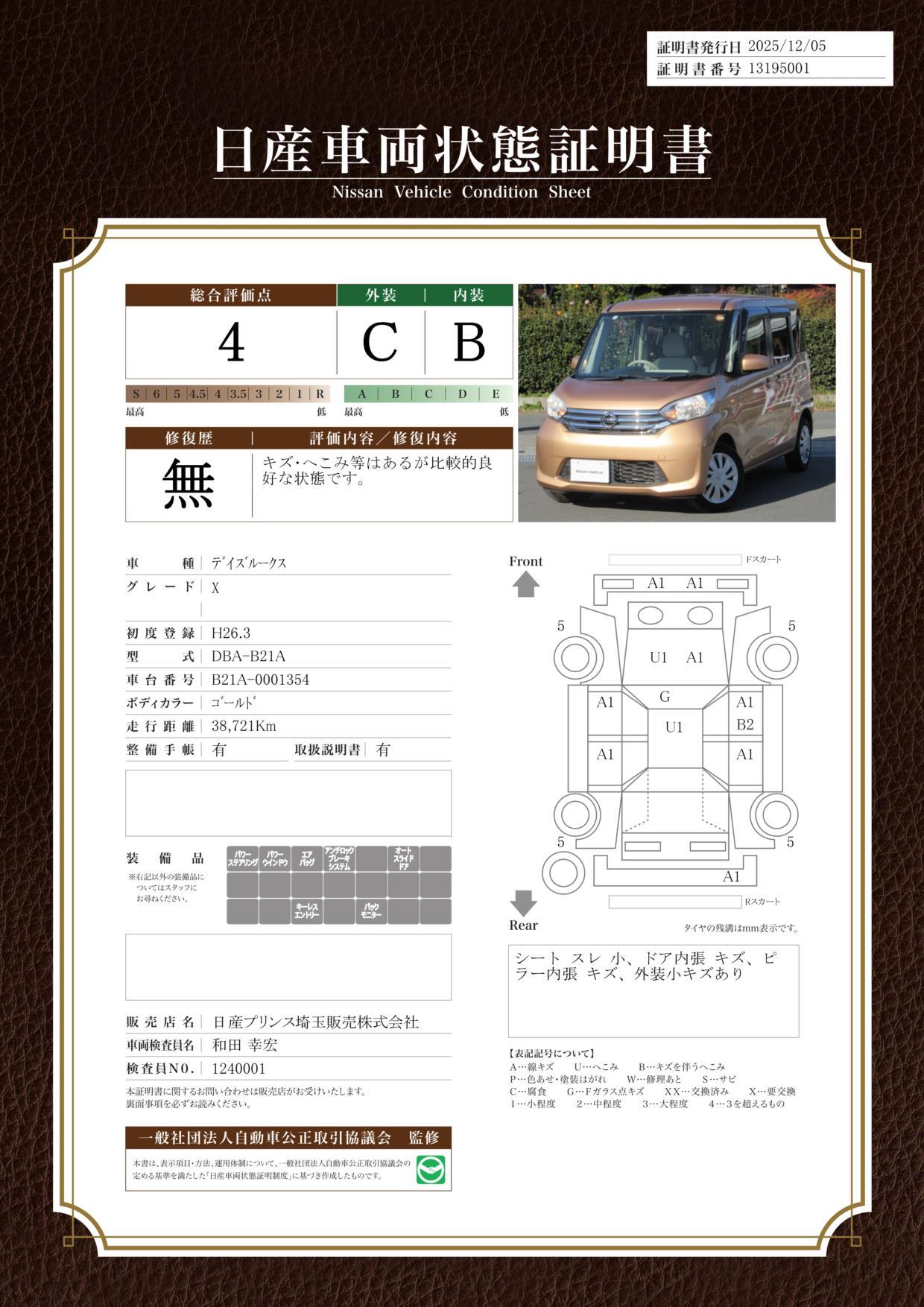 | 保証修理受付先 | 全国の日産ディーラーサービス工場に於いて承ります。 |