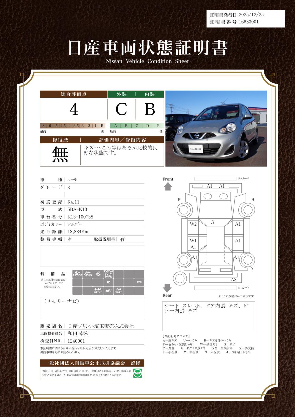 ●全車保証付き!全国3000ヵ所の日産サービス工場で修理可能です●1年間走行距離無制限、無料保証では含まれることが少ない バッテリーも保証対象となります。●納車後1ヵ月または1000Kmの無料点検も受けていただけます。●ワイド保証ライト(3ヶ月保証、30万円未満)