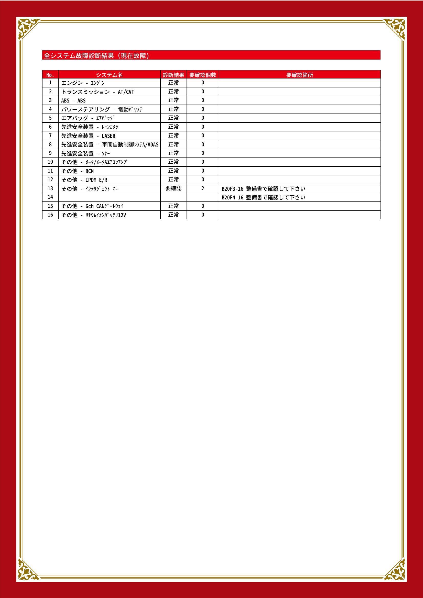 | 保証項目 | エンジン・サスペンション・電子制御部品・排出ガス浄化装置・ステアリング機構・乗員保護装置・動力伝達装置・ブレーキ機構・12Vバッテリー・純正ディラーオプション部品・オーテックジャパンLV車両架装品 |