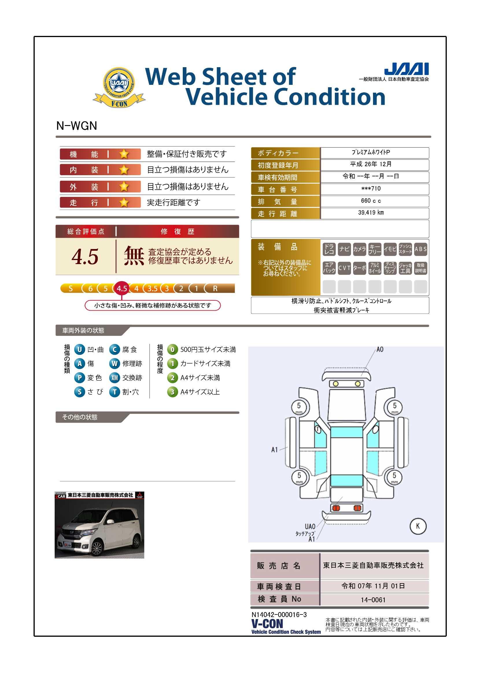 1年走行距離無制限保証全国の三菱自動車ディーラーで使える、1年間の無料保証付きです。(消耗品、油脂類、ボデー内外装部品は対象外になります)さらに有料で2年間の延長が可能です。