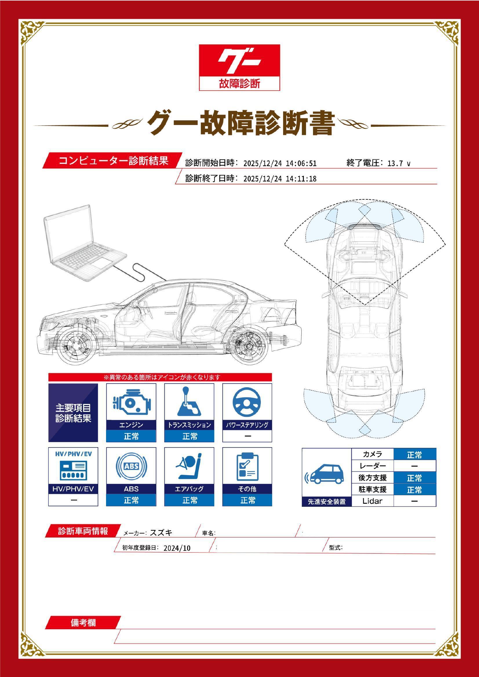 保証項目 3ヶ月・3000km以内ならエンジン、トランスミッション、ハイブリッド、ステアリング、ブレーキの各機構における主要項目を無償修理(または交換)いたします。