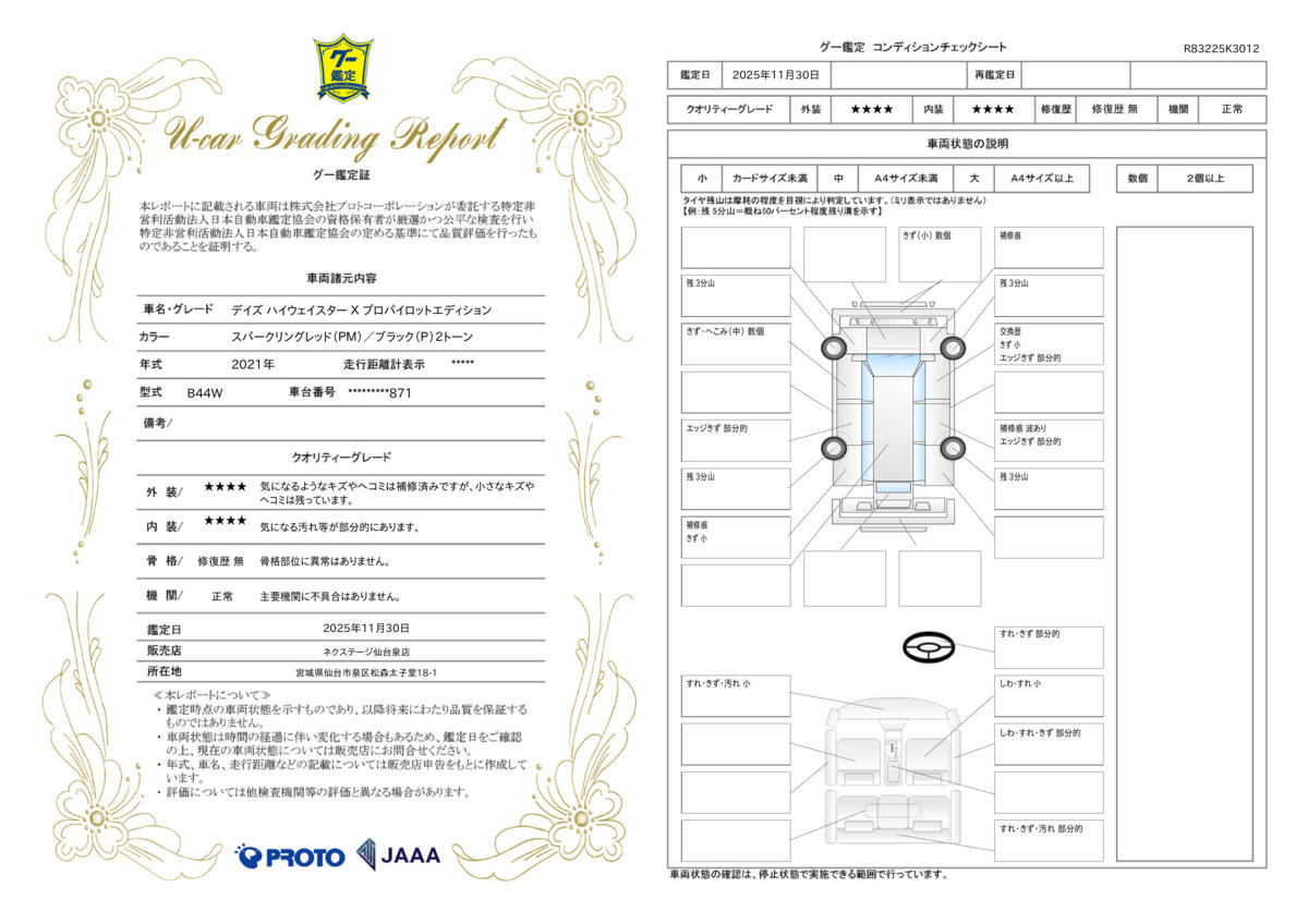 弊社では、全車『修復歴なし』のお車のみ取り扱っております。専任バイヤーによる厳選した仕入れの後、入庫後の車両チェックを行い、ネクステージが認定した高品質な中古車をご提供しております。 15