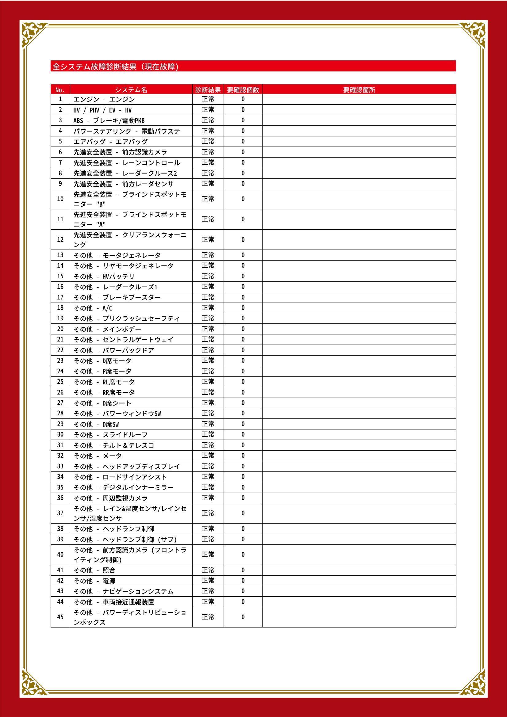 | 保証項目 | 3ヶ月・3000km以内ならエンジン、トランスミッション、ハイブリッド、ステアリング、ブレーキの各機構における主要項目を無償修理(または交換)いたします。 |