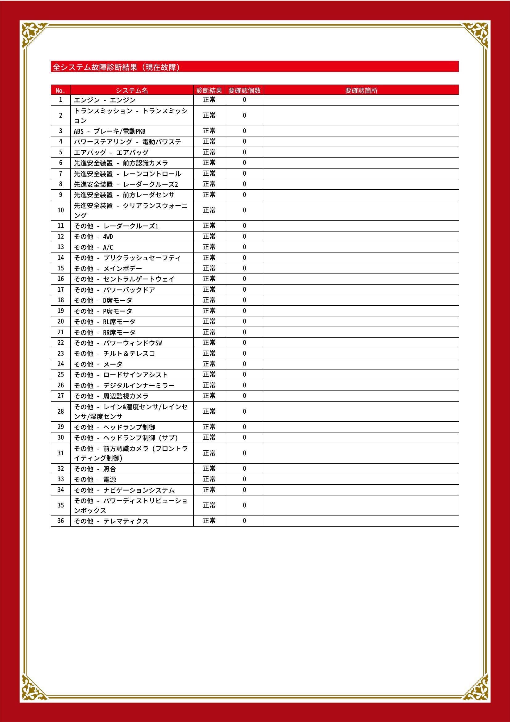 | 保証項目 | 3ヶ月・3000km以内ならエンジン、トランスミッション、ハイブリッド、ステアリング、ブレーキの各機構における主要項目を無償修理(または交換)いたします。 |