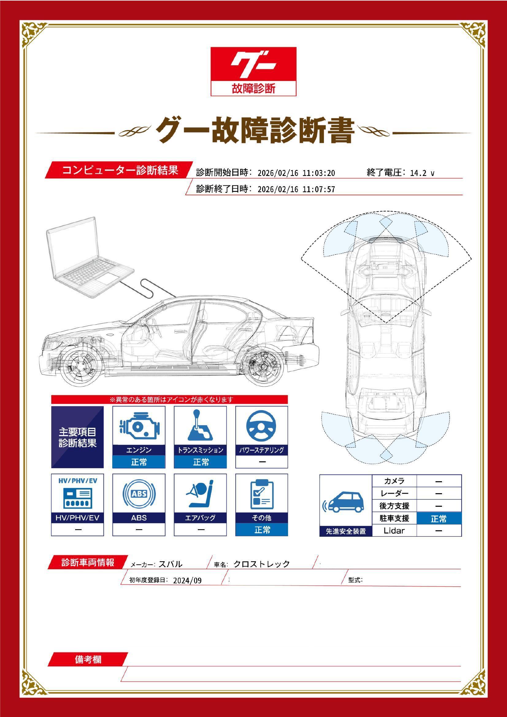 | 保証項目 | 3ヶ月・3000km以内ならエンジン、トランスミッション、ハイブリッド、ステアリング、ブレーキの各機構における主要項目を無償修理(または交換)いたします。 |