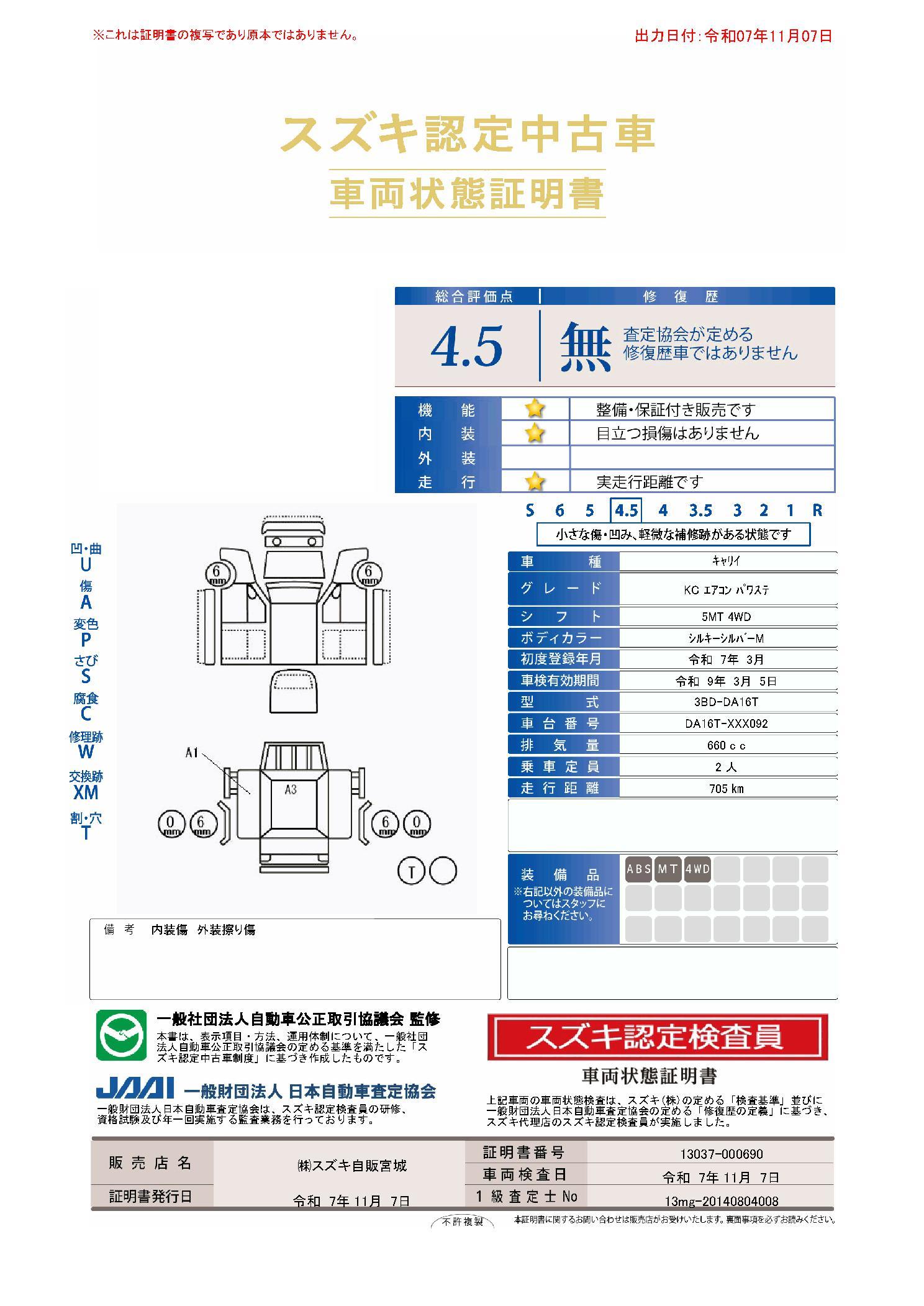 修復歴 なし 車体色 シルキーシルバーメタリック