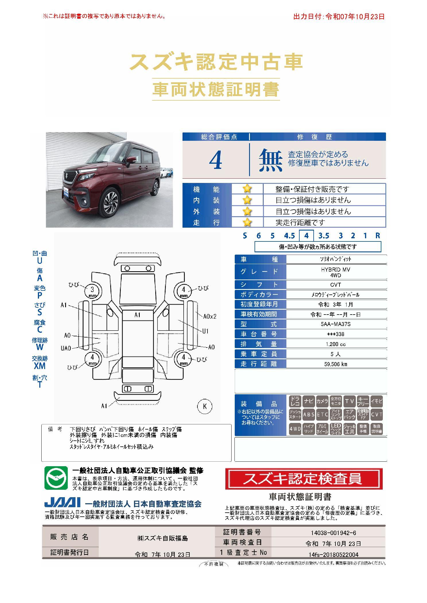 新車登録から60ヶ月以内のお車で、内外装良質な一台にお付けする36ヶ月・走行距離無制限の保証になります。もちろん点検を行い整備を完了してご納車いたします。※ スズキプレミアム認定中古車のお取り扱いには一定の条件がございます。詳しくは販売会社スタッフまで。