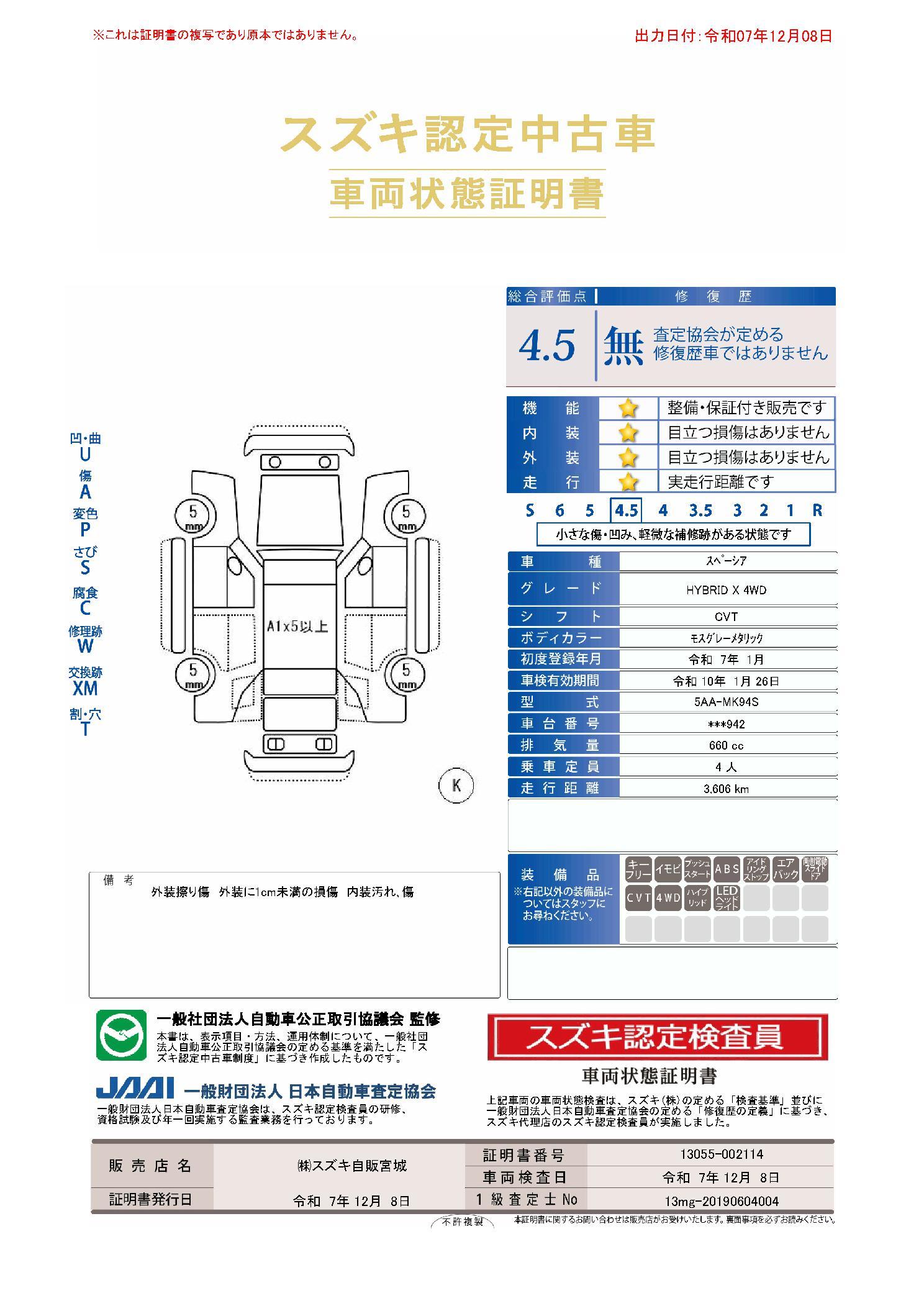 | 保証について | [保証付]:36ヶ月・走行無制限 |