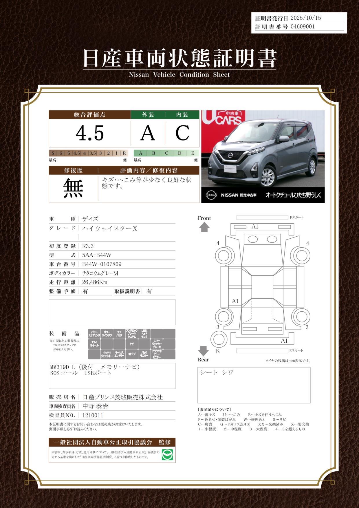 デイズ ハイウェイスター X 純正メモリーナビ アラウンドビューモニター 0100172A30251011W001 44