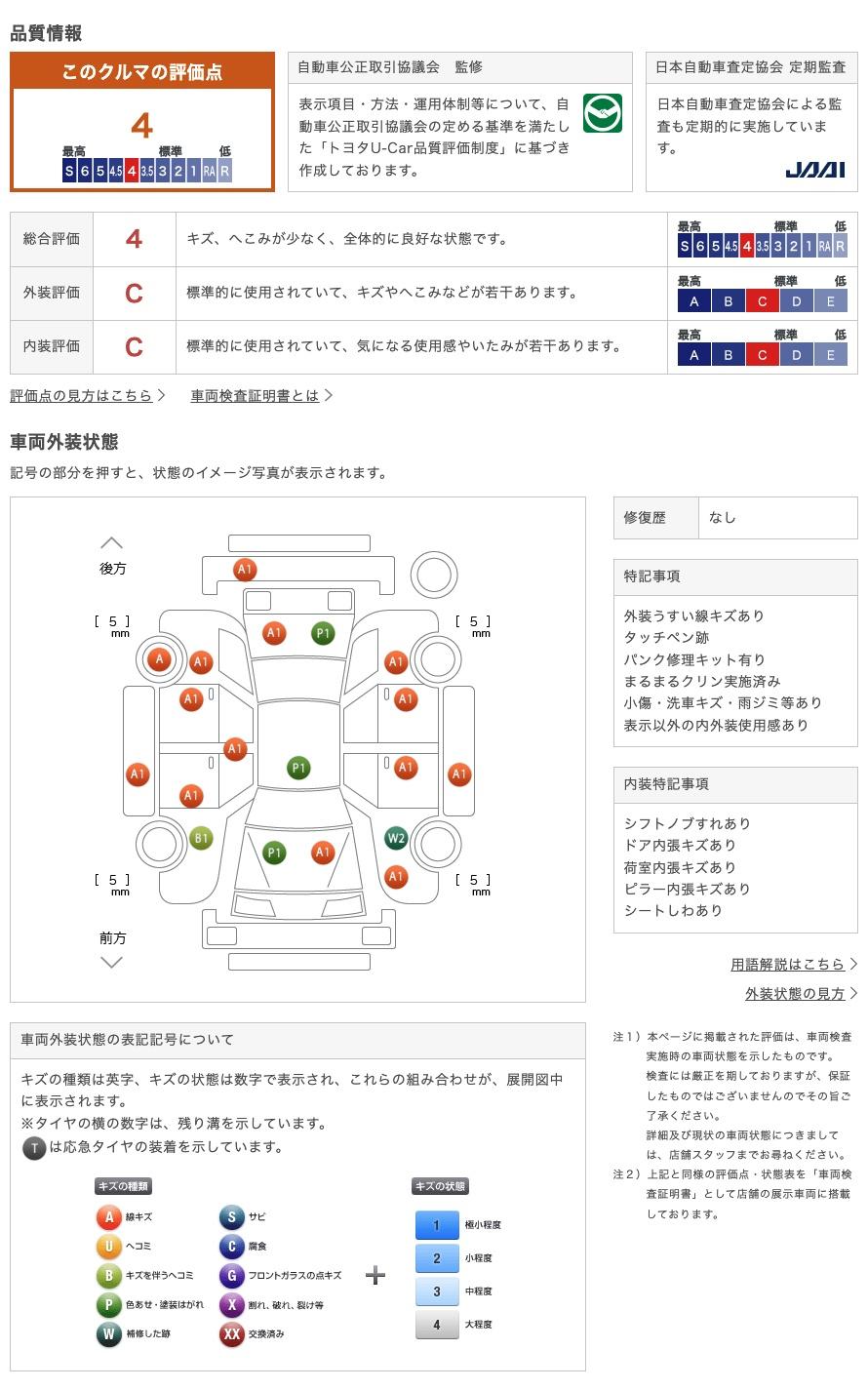 トヨタ認定車両検査員が正しく厳しく車両を検査、修復歴はもちろん小さな傷も正確にお伝えします。 74