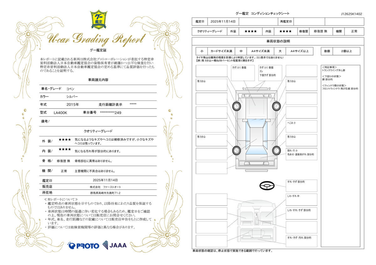 | 保証修理受付先 | ご購入されました車両に何かございましたらファーストオートまでご連絡ください。 |