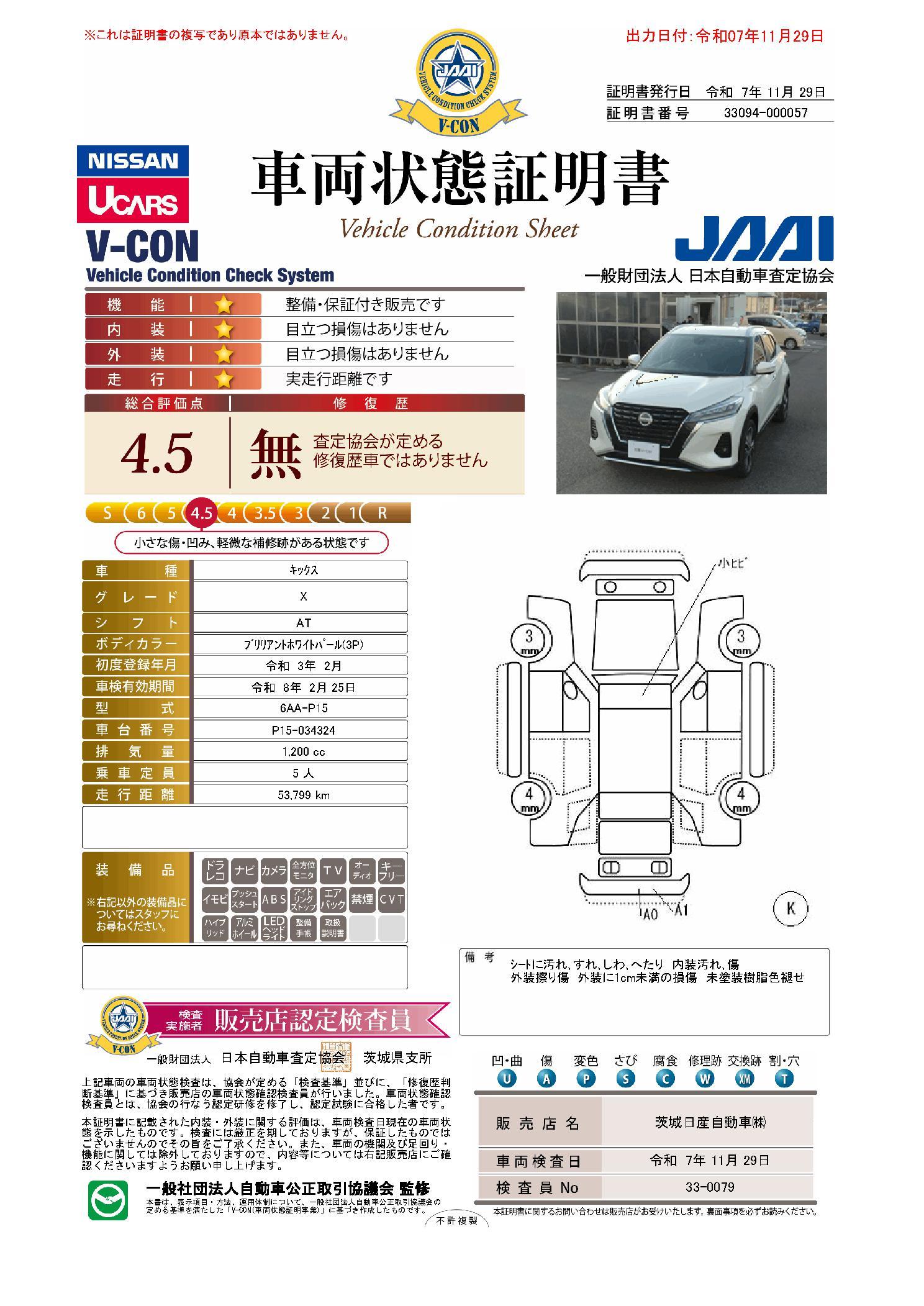 [保証付]:12ヶ月・走行無制限 ☆全国ワイド保証付☆パーツ類を1年間無料保証!(走行距離無制限)”駆動系・電装系パーツなど、消耗品・油脂類を除く全パーツに適応。”全国3,000ヵ所の日産直営サービス工場が対応!!別途3年保証もご用意 |