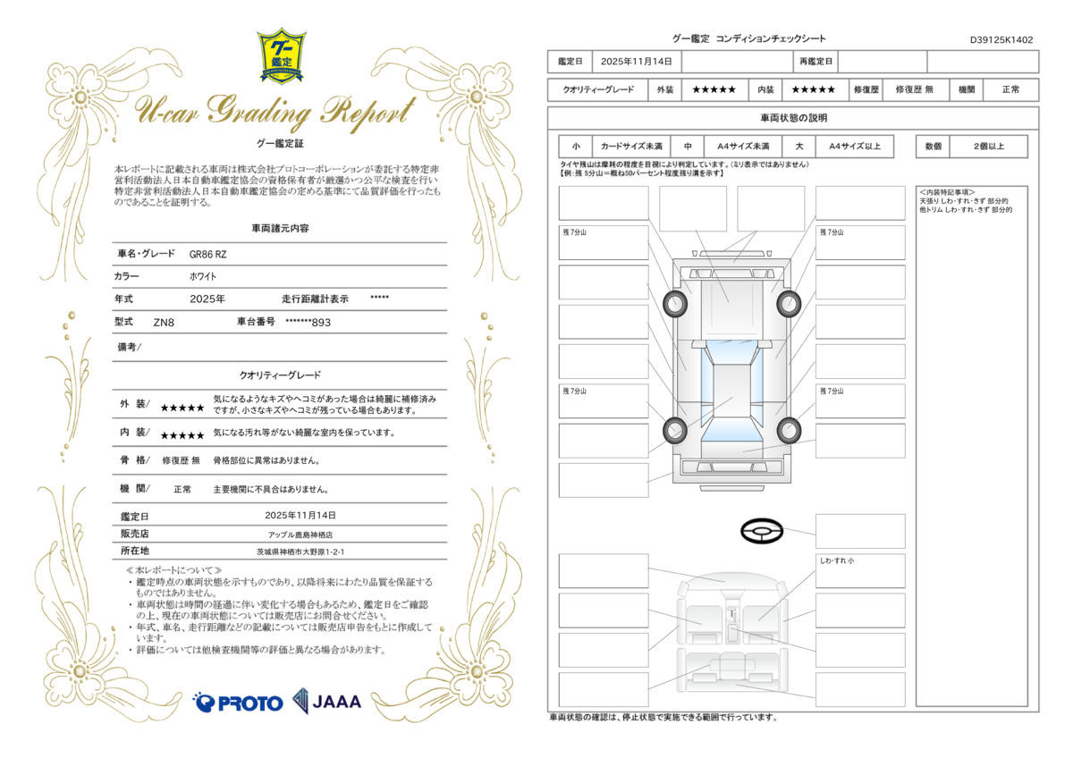 | 保証項目は410項目!!エンジンから細かい部分までしっかりと保証します!!※純正のみの保証となりますので、お客様が後付けしたものに関しては保証されませんので、ご了承下さい。 |