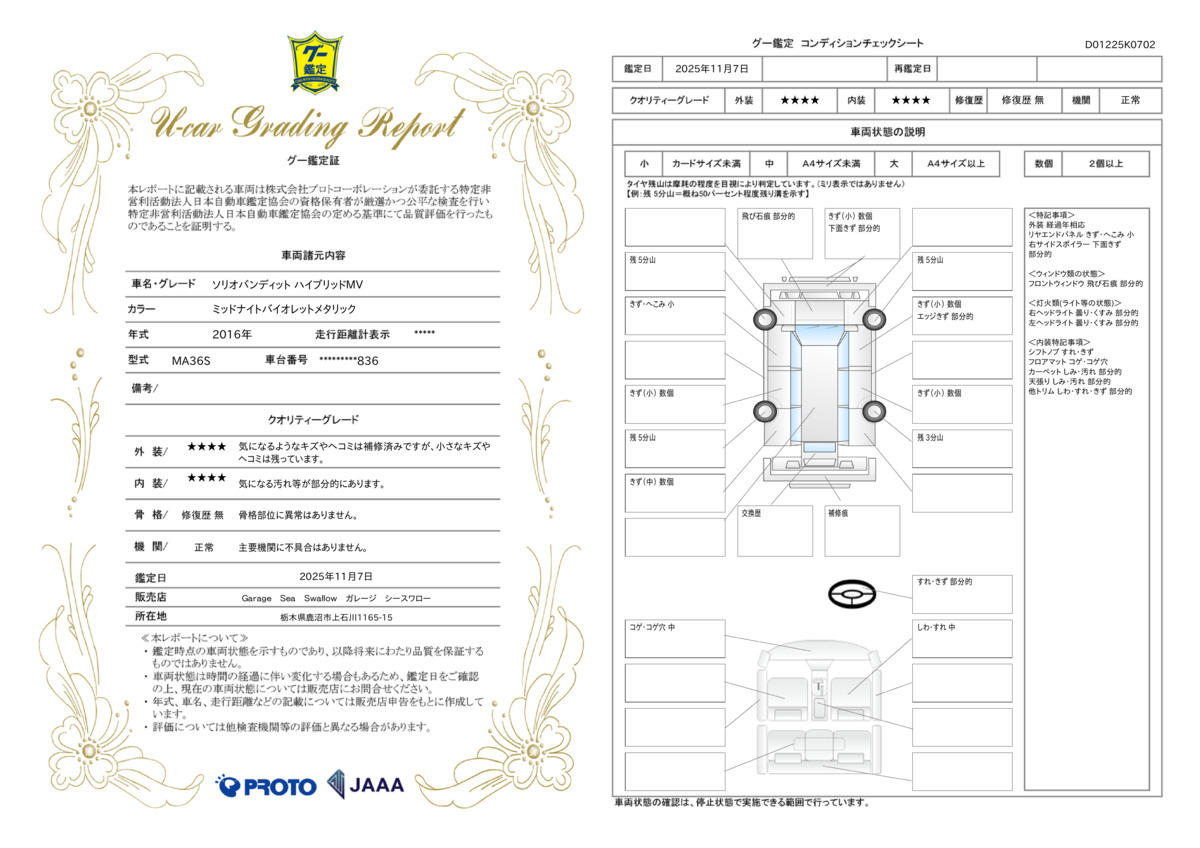 [保証付]:12ヶ月・走行無制限 エンジン機構及びエアコン機構の保証となります。1年間保証が付いて納車後も安心してお乗り頂けます。また、全国どこでも対応の緊急ロードサービス付きです。(24時間365日対応) |