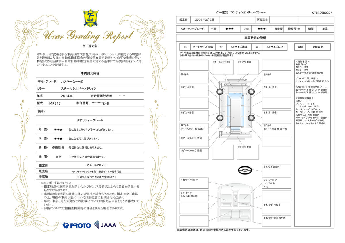 本保証の開始時からの走行距離が500Kmに満たない車両に生じたエンジン本体及びトランスミッションの交換又はオーバーホールについて、本保証に基づき保証修理を行う責任を負わないものとします。 |