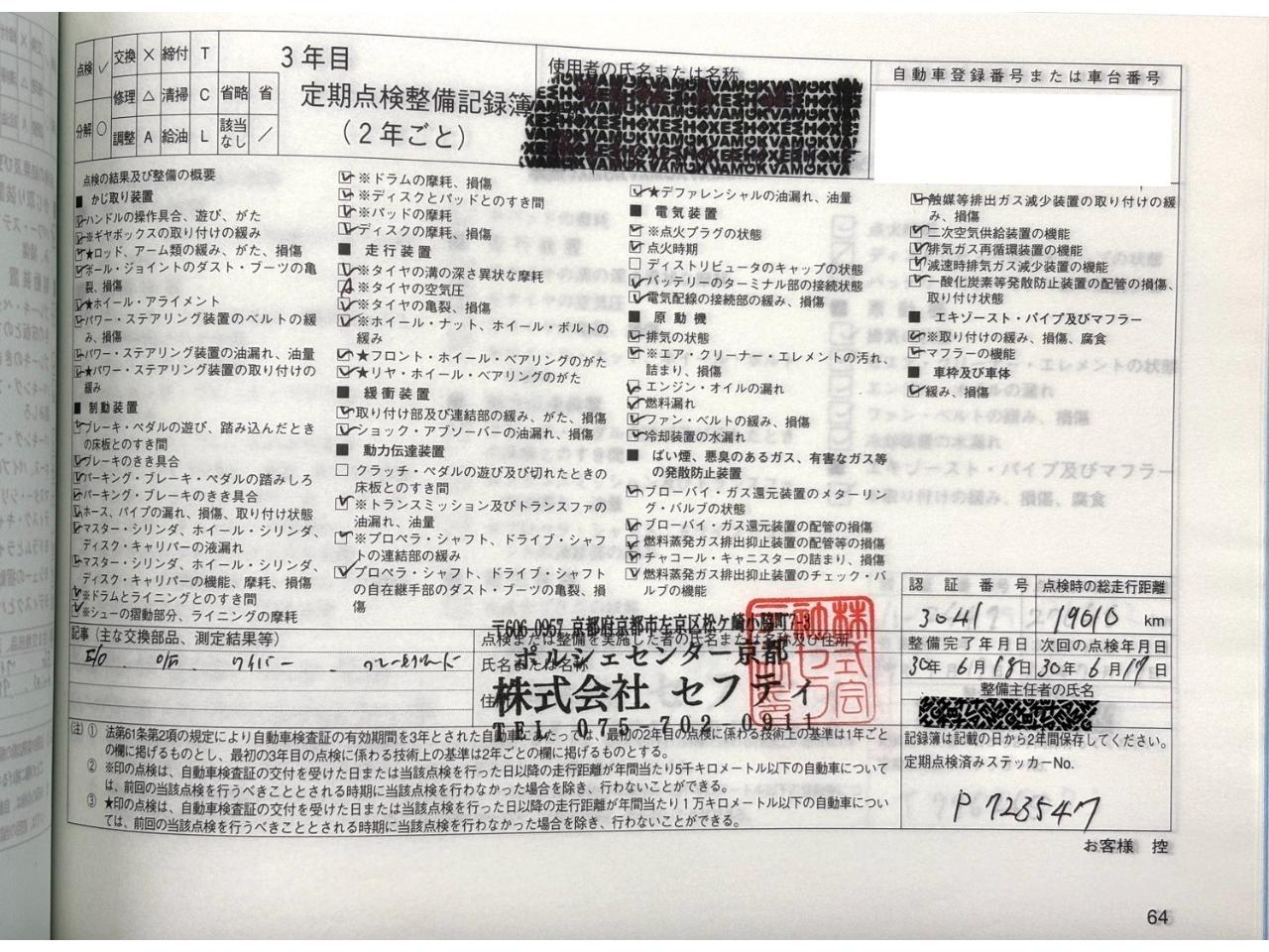 [保証付]:3ヶ月・3000km ※いずれか早い時期が保証適用の条件となります。 納車日より3ヶ月又は3000kmに達するまで無料で保証が受けられます。遠方のお客様はお近くのディーラー、又は提携工場でのご対応となります。メンテナンスも含めて納車後も幅広くお客様をサポート致します。 |