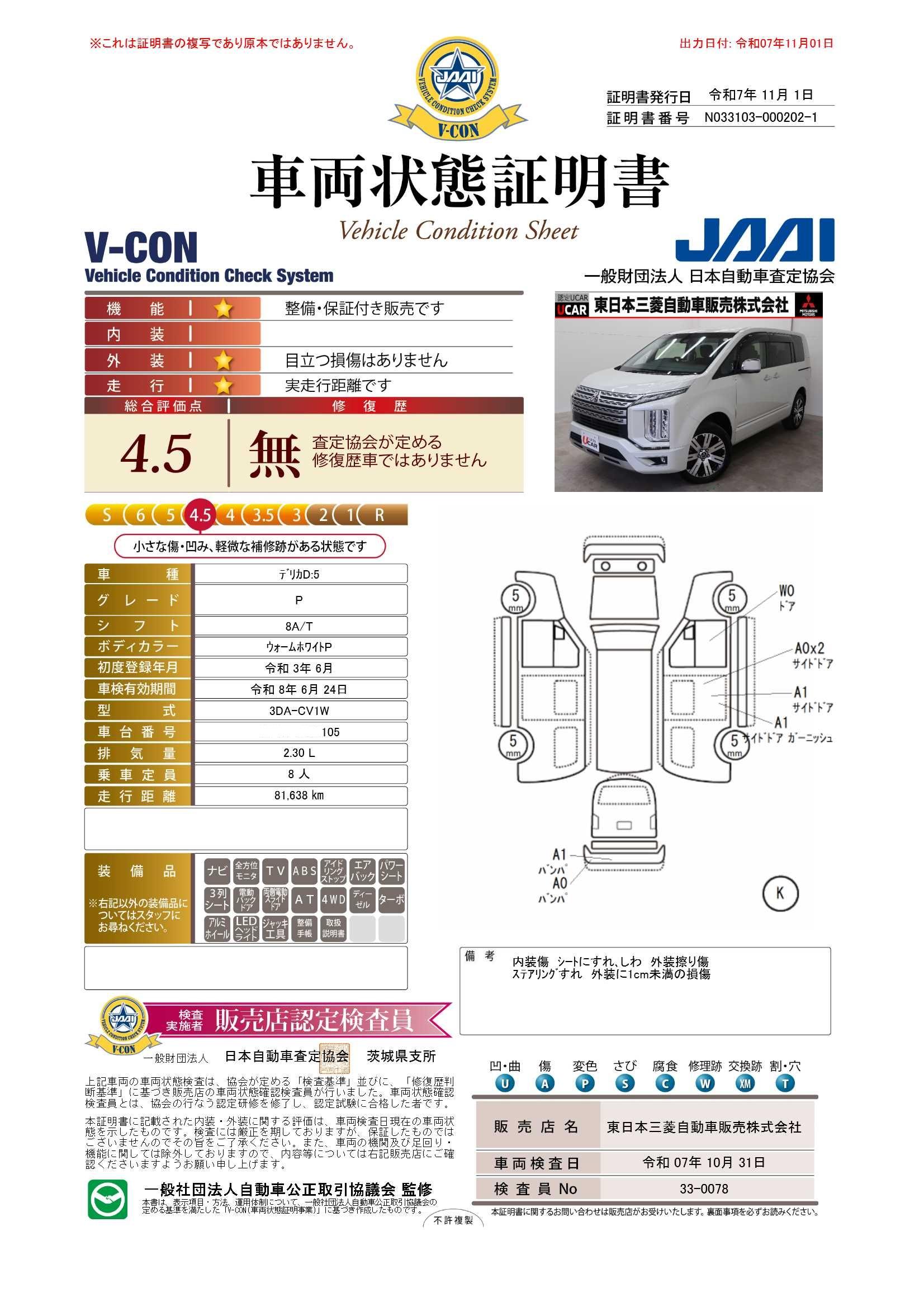 [保証付]:12ヶ月・走行無制限 1年間(走行距離無制限)の三菱ダイヤモンド保証付きです。保証期間を最長3年まで延長することのできる『延長保証』もご用意しております♪ |