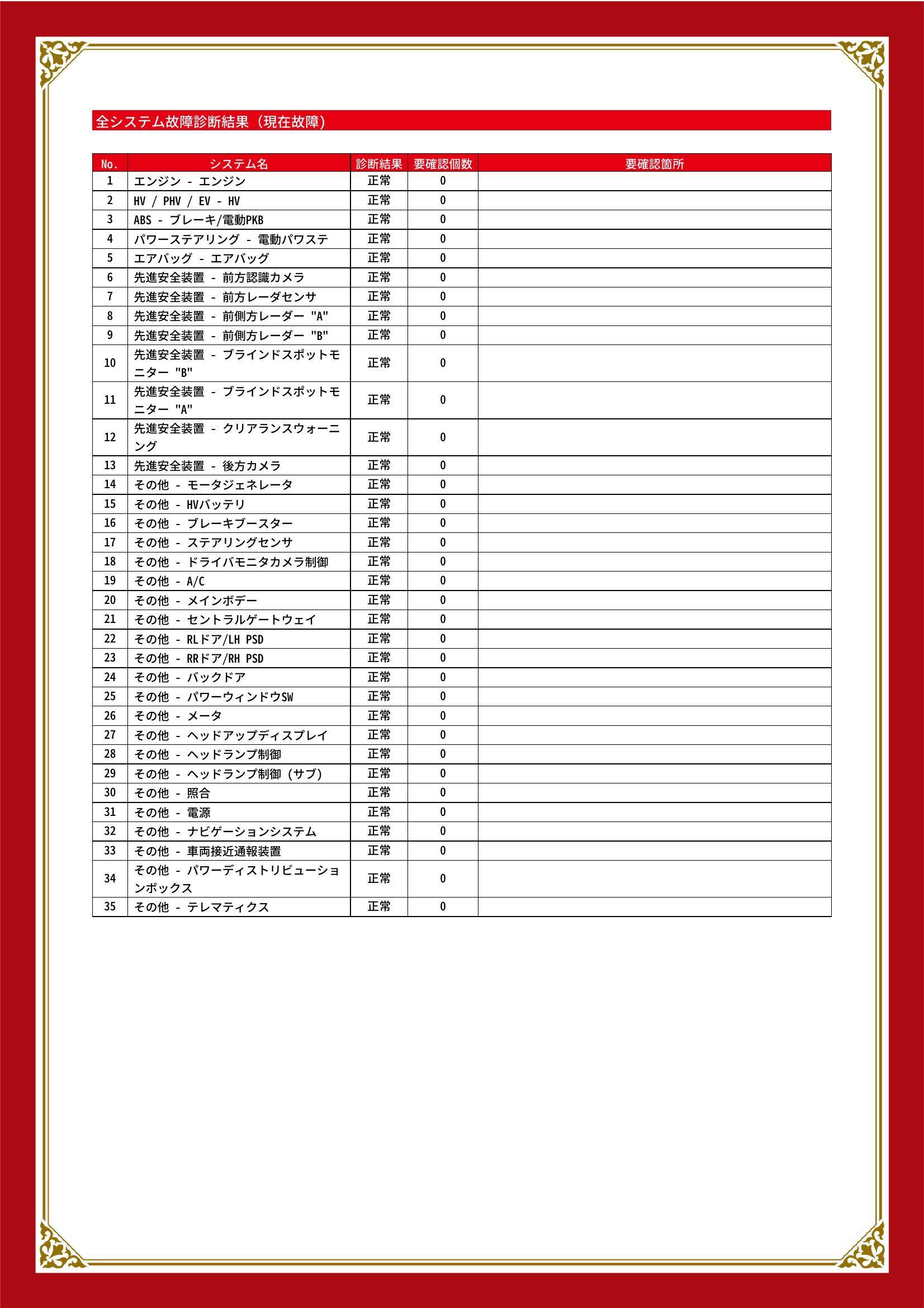 | 保証項目 | 納車後1ヶ月・1000km以内は36機構・343項目を保証いたします。詳しくは販売店までお問い合わせ下さい。 |