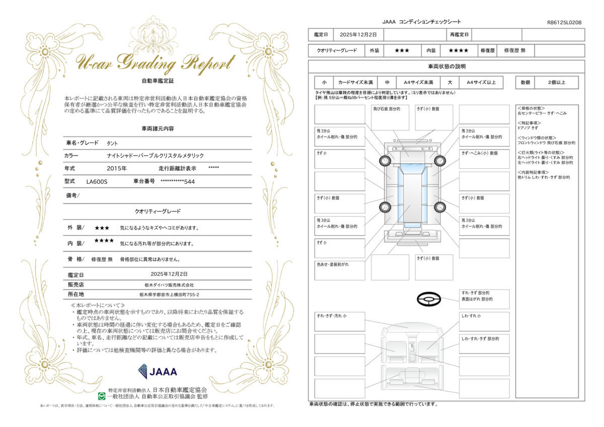 | 保証項目 | まごころ保証サービスは新車保証に準じた(消耗品、ゴム類部品、油脂類、内外装部品、経時変化などを除く)1年間・走行距離無制限の保証です。(新車保証期間中の車両は新車保証を継承して販売しております。) |