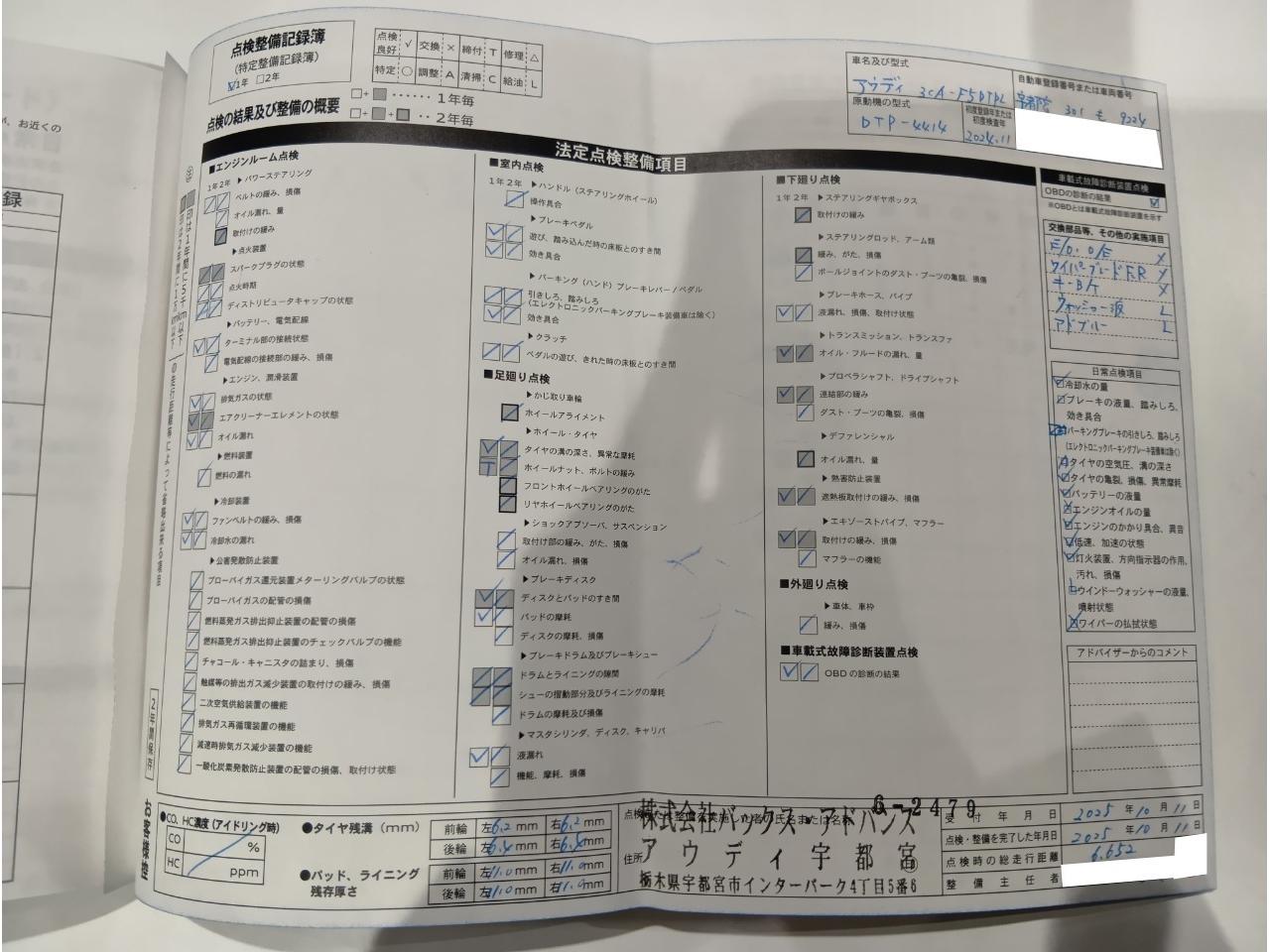 初度登録日から5年間(2回目の車検まで)、走行距離無制限でエンジンやトランスミッション、ブレーキ等の主要部品を含むほぼ全部品を無償で保証致します。有償で保証延長(2年or1年)も可能