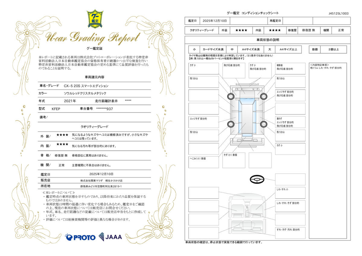 ・12ヶ月点検、又は、車検整備に相当する商品化整備を実施・納車後、1ヶ月後に無料点検整備を実施・全国のマツダディーラー共通のメンテナンスノートを発行・全国のマツダサービス網による万全のサポート体制※マツダ車のみ適用 ※保証内容詳細はスタッフにお問い合わせください。
