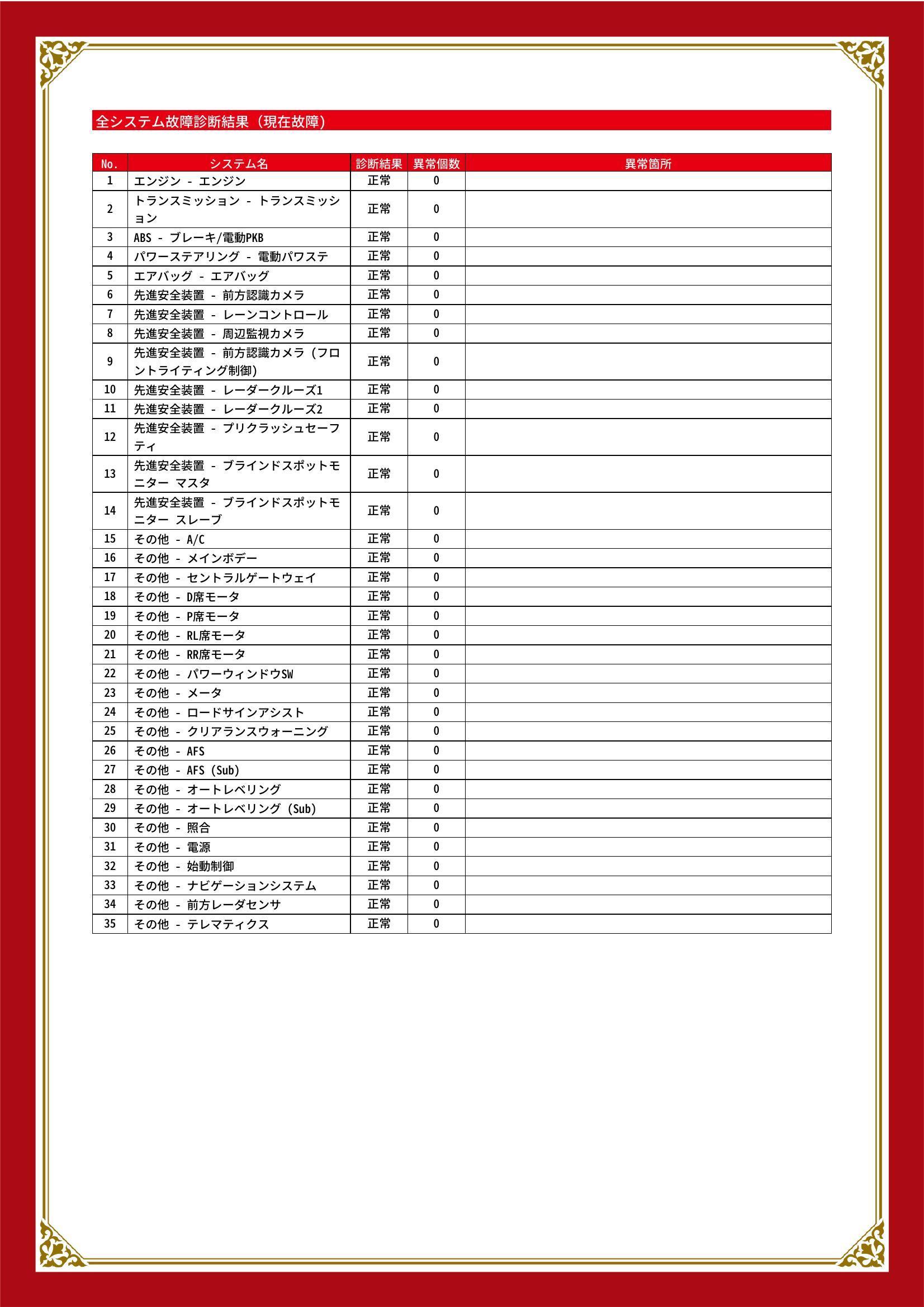 | 保証項目 | 3ヶ月・3000km以内ならエンジン、トランスミッション、ハイブリッド、ステアリング、ブレーキの各機構における主要項目を無償修理(または交換)いたします。 |