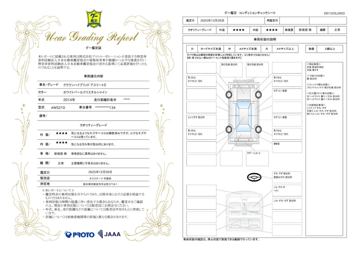 | 保証項目 | 3ヶ月・3000km以内ならエンジン、トランスミッション、ハイブリッド、ステアリング、ブレーキの各機構における主要項目を無償修理(または交換)いたします。 |