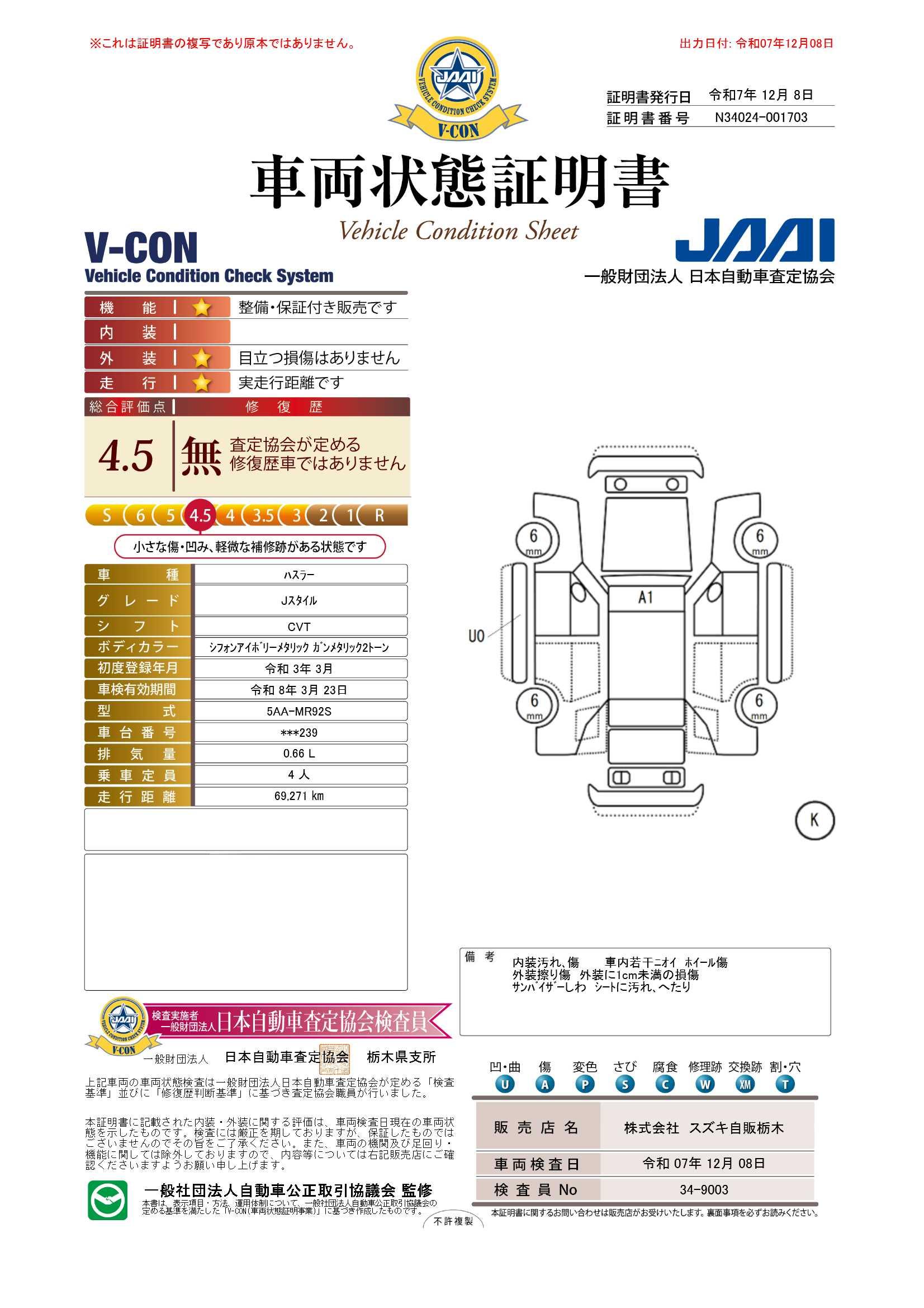 | 保証について | [保証付]:12ヶ月・走行無制限 |