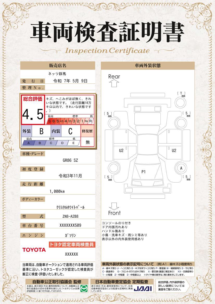 [保証付]:12ヶ月・走行無制限 トヨタロングラン保証(無料保証)1年間・走行距離無制限!約60項目5000部品!全国5000ヶ所のテクノショップにて保証修理可能。※保証期間延長可能(有料) |