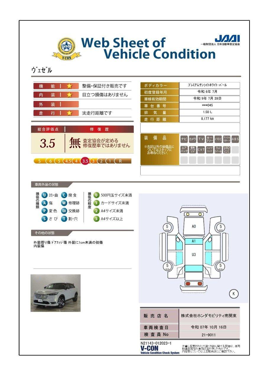 ホンダ ヴェゼル e:HEVPLaY HondaSENSING メモリーナビ リアカメラ