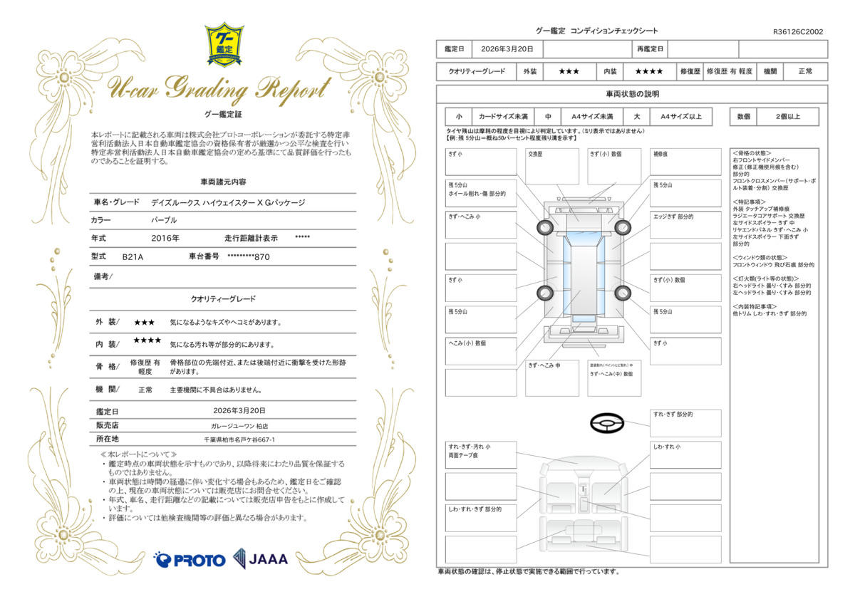 | 保証修理受付先 | ガレージユーワン各販売店 |