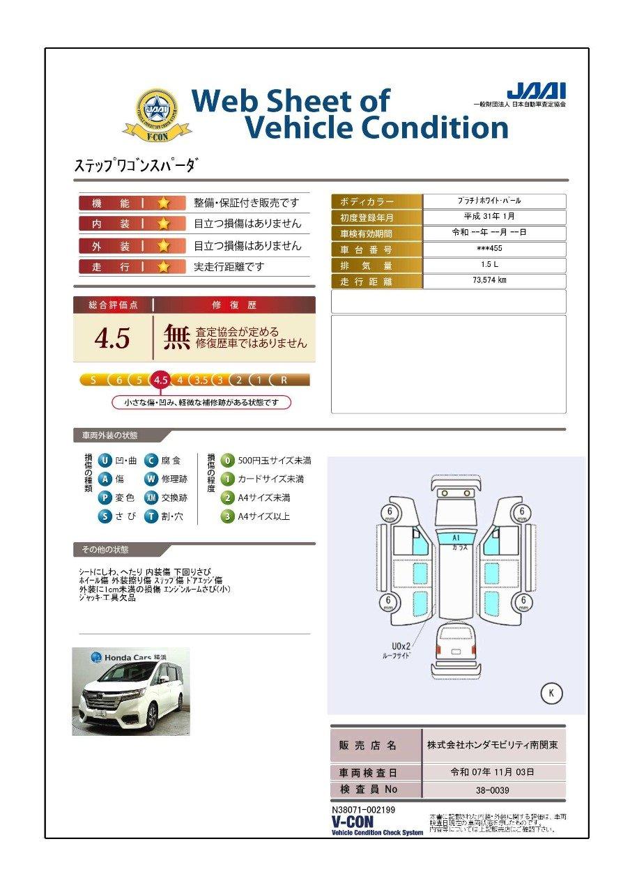 基本1年間走行距離無制限保証が付帯されておりますが、プラス費用で最長5年間走行距離無制限保証とすることができます。エアコン、純正オーディオ(ナビ)など新車時に付帯されているメーカー保証に準じております。全国のホンダディーラーで保証が受けられます。
