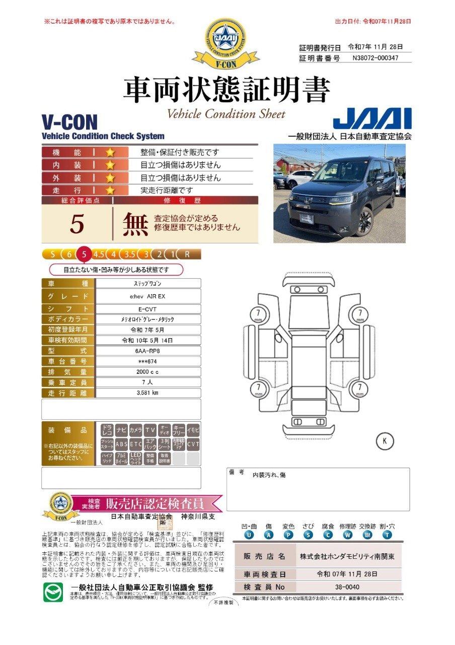 基本1年間走行距離無制限保証が付帯されておりますが、プラス費用で最長5年間走行距離無制限保証とすることができます。エアコン、純正オーディオ(ナビ)など新車時に付帯されているメーカー保証に準じております。全国のホンダディーラーで保証が受けられます。