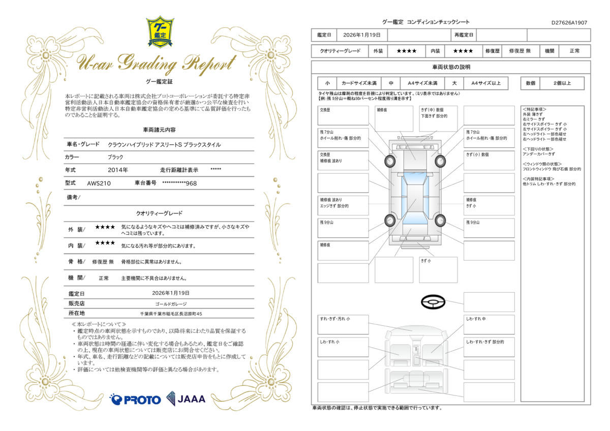 [保証付]:期間期限指定なし・走行指定なし 別途有償保証がございます。最短1年〜最大3年の保証期間最大437箇所をカバーした保証範囲保証範囲・期間によって保証料金が変わりますので、詳細はスタッフまでお問合せください。 |