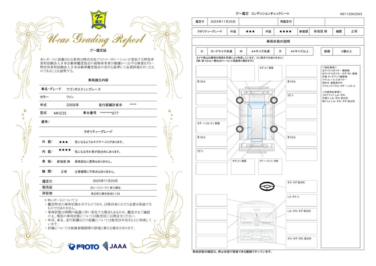 | 保証修理受付先 | ガレージユーワン各販売店 |