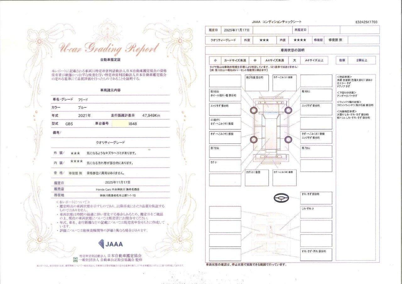1年間・走行距離無制限のホッと保証(部分保証)(ホンダ純正品に限ります)付きです。さらに、わずかなご負担で最大でプラス4年の延長保証で最長5年間走行距離無制限のホッと保証プラスをご用意しております!(加入出来る条件がございます!詳細はスタッフまで!)