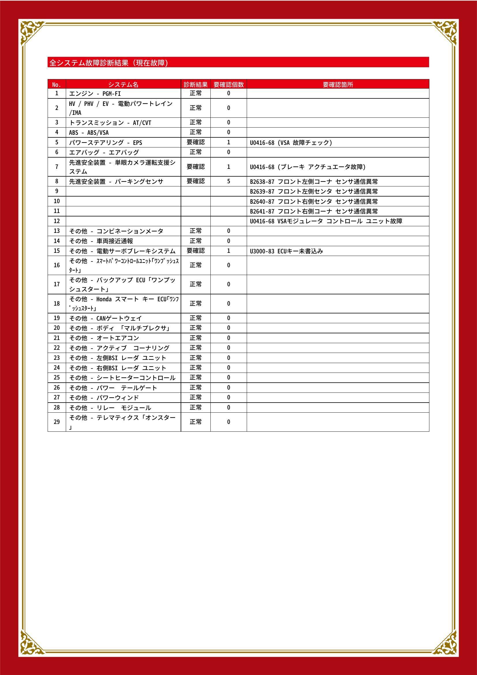 | 保証項目 | |