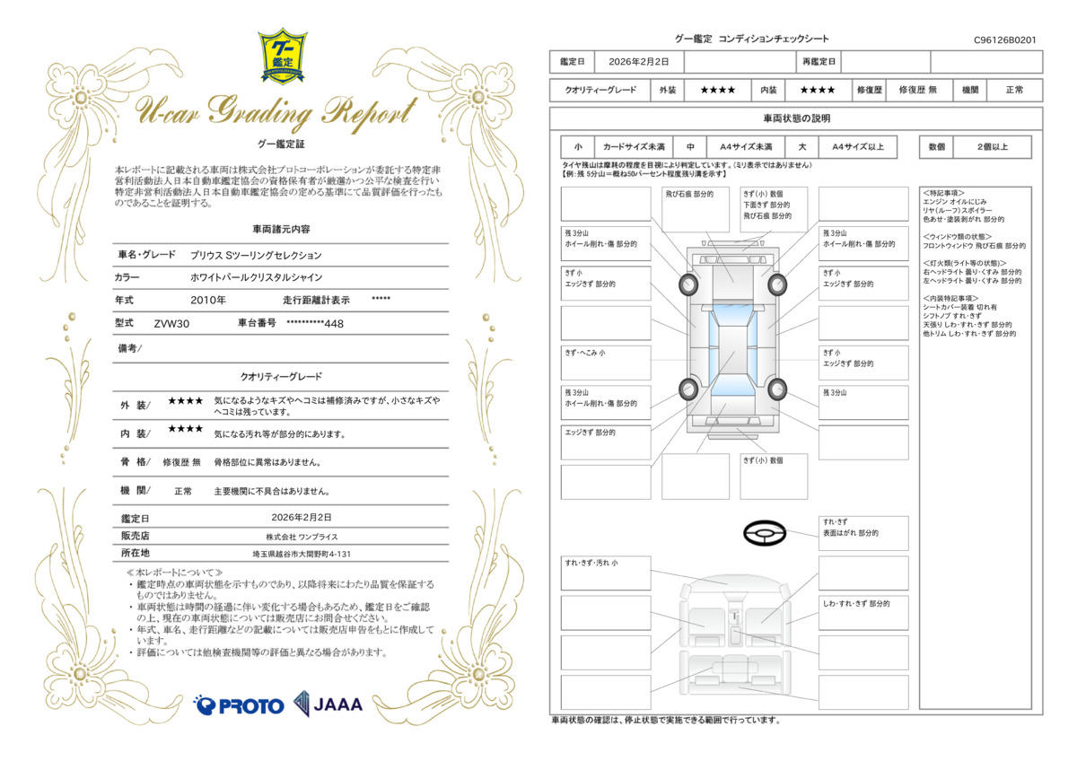 | 保証について | [保証付]:1年・12000km いずれか早い時期が保証適用の条件となります。 |