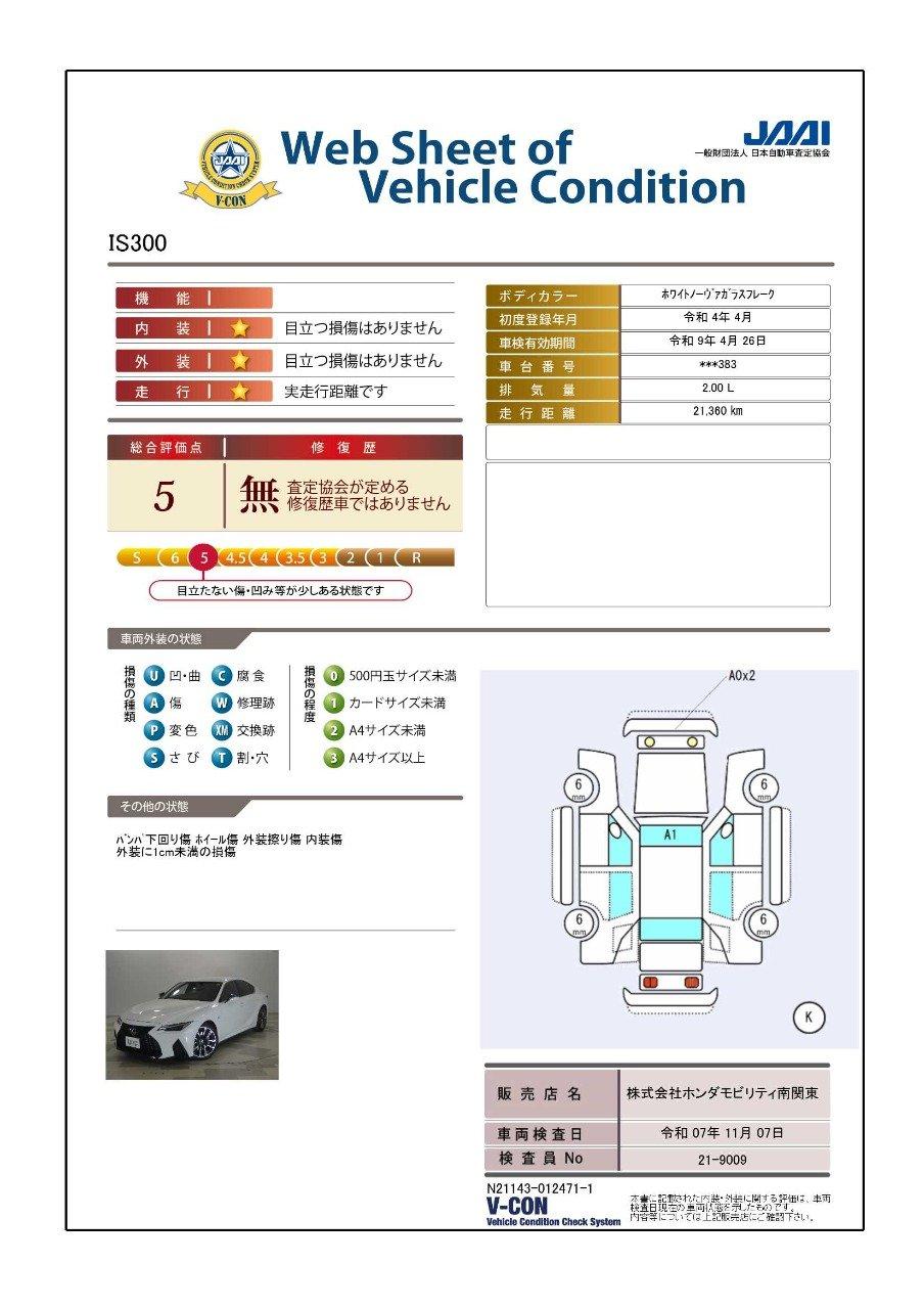 レクサス IS IS300Fスポーツ 禁煙車 1オーナー Pシート
