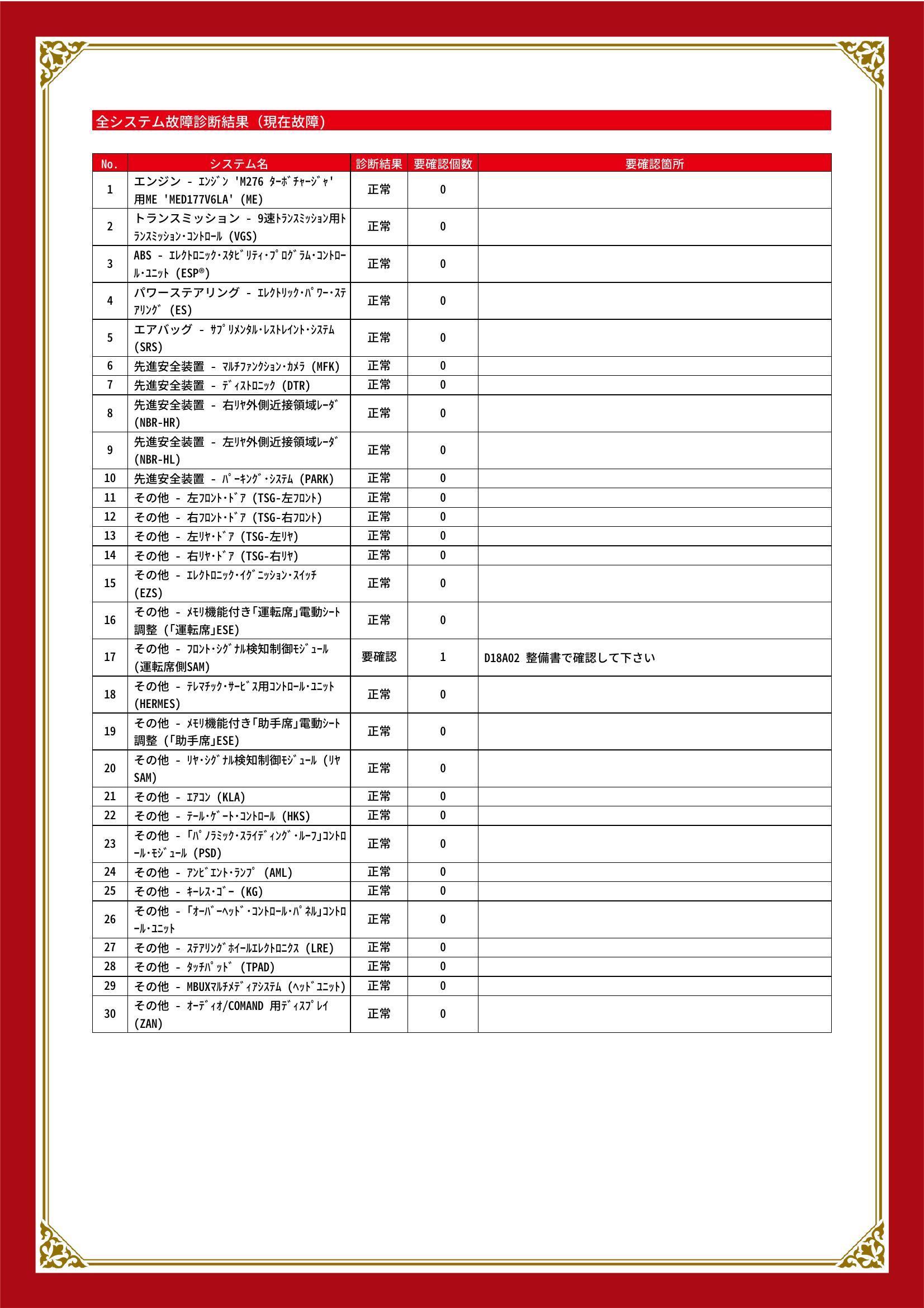[保証付]:24ヶ月・走行無制限 ●2年保証(走行距離無制限):純正部品の材料または製造上の不具合が発生した場合、無償修理を実施(消耗部品や油脂類、内外装は除く)。全国のメルセデス・ベンツ正規サービスネットワークでご利用いただけます |