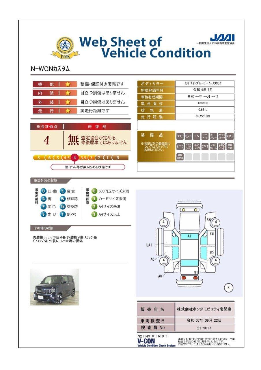 [保証付]:24ヶ月・走行無制限 無料保証が2年付いているので安心です (通常のU−Selectは1年保証)品質に自信があるので、走行距離無制限で幅広い部品を保証。全国のHonda Carsでご対応できますので安心です。 |