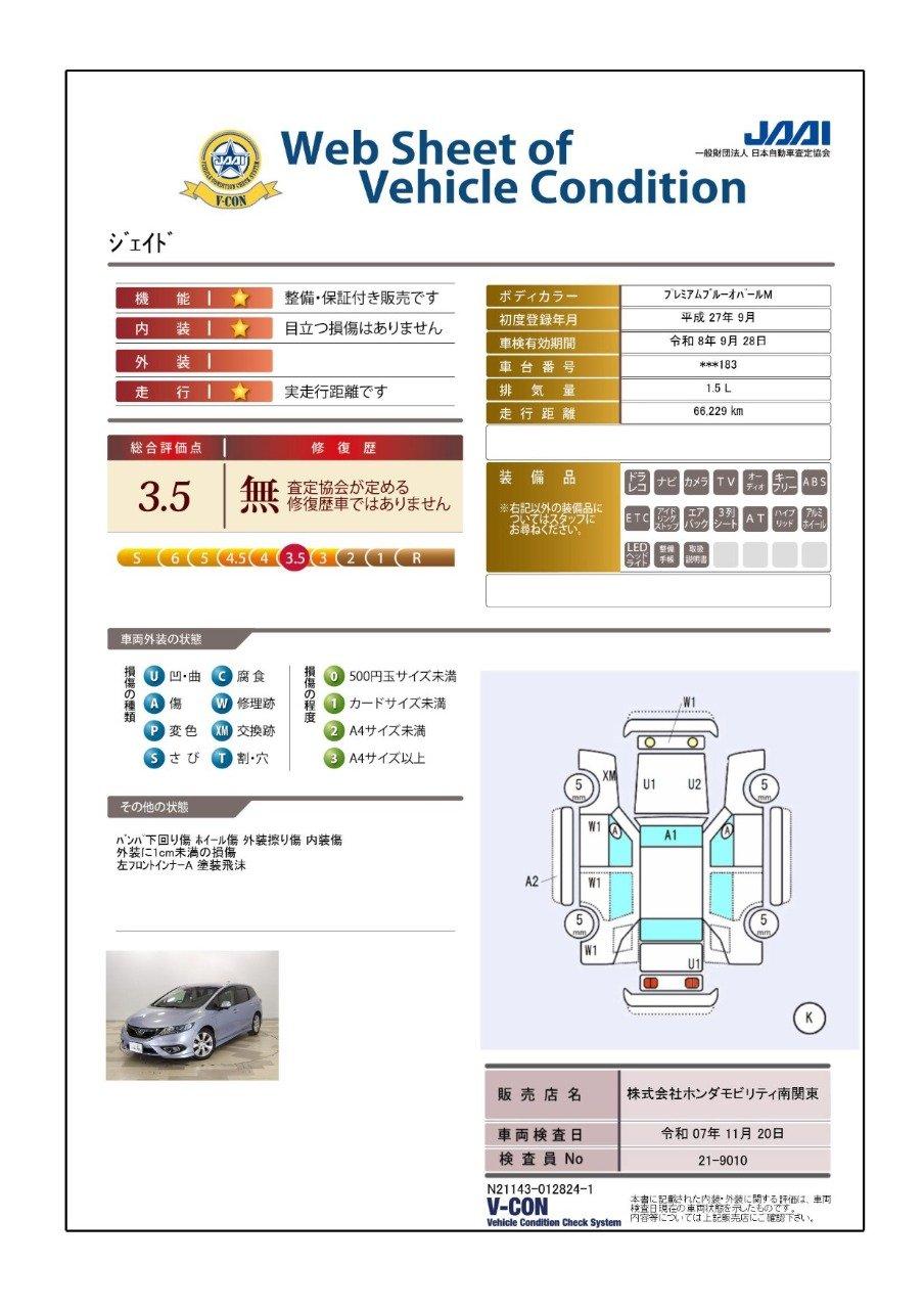 ジェイド ハイブリッドX 禁煙車 レザーシート ホンダセンシング 0560044A30251124W003 39